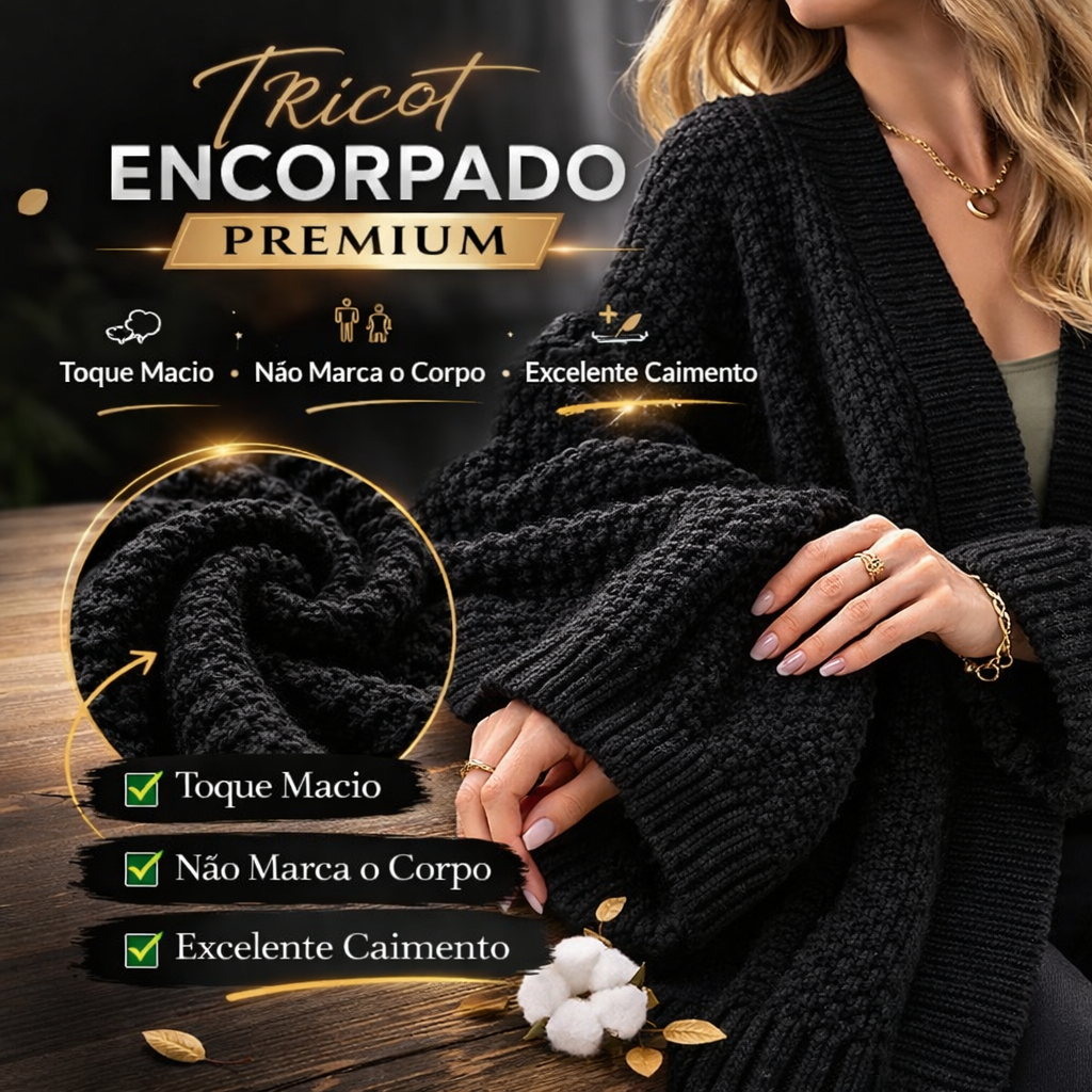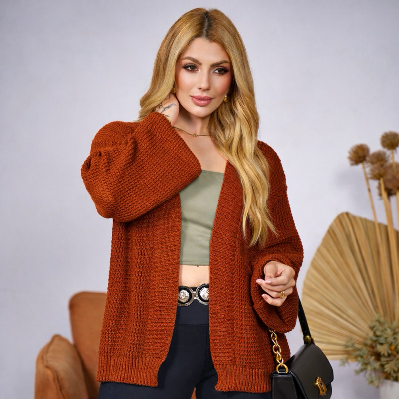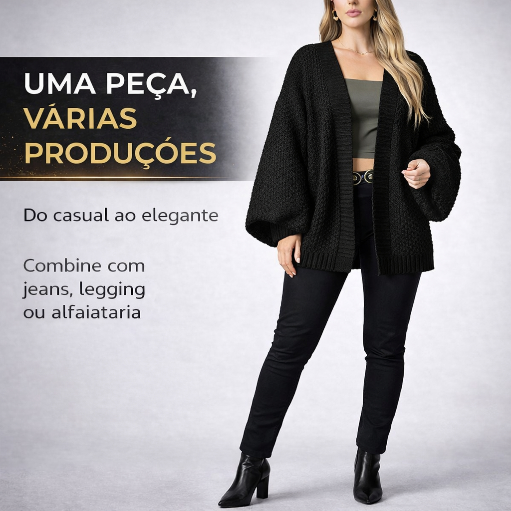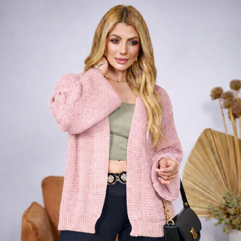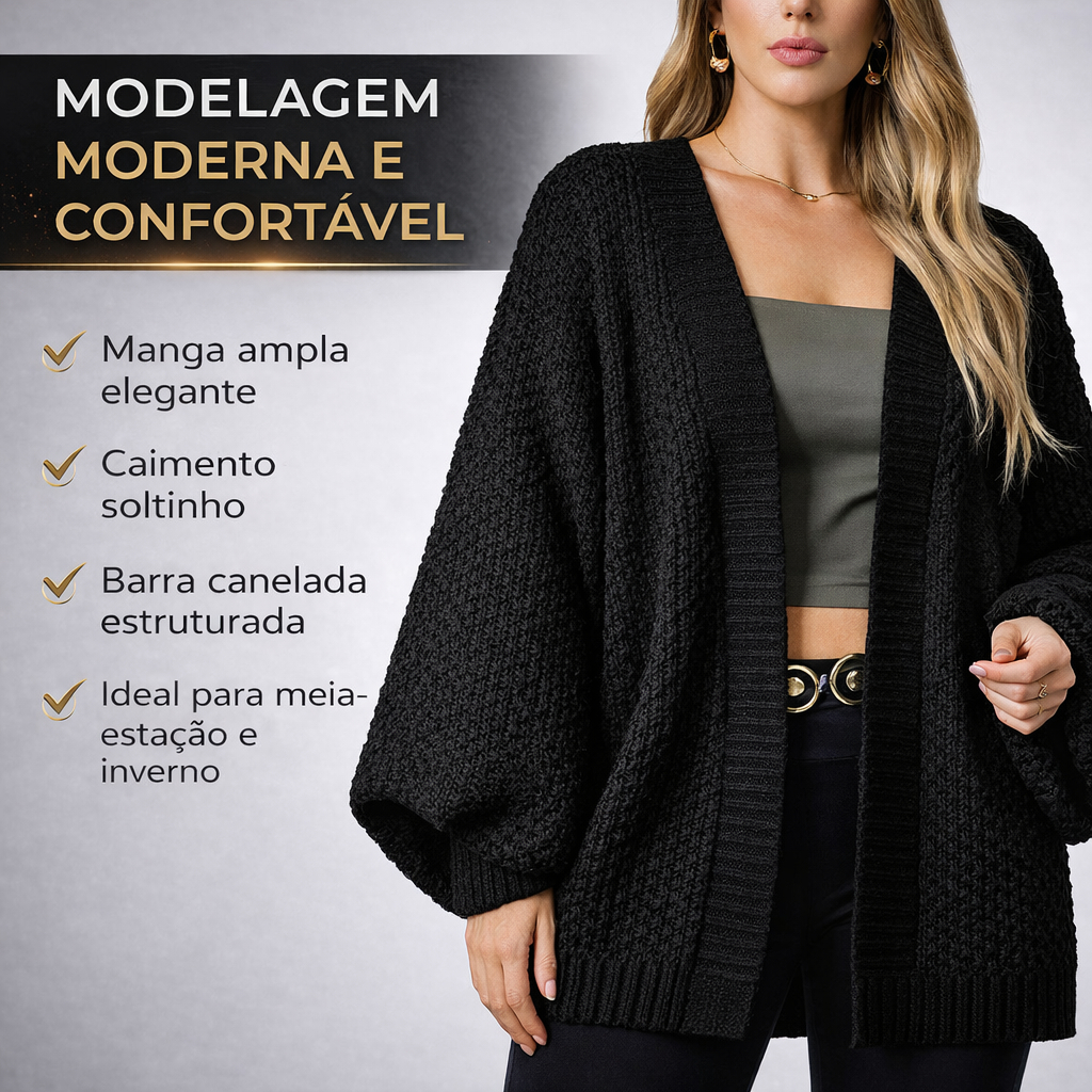 Cardigan Feminino Tricot Manga Longa Manga Bufante Encorpado Manga Ampla Moda Outono Inverno Casaco Kimono Casaquinho