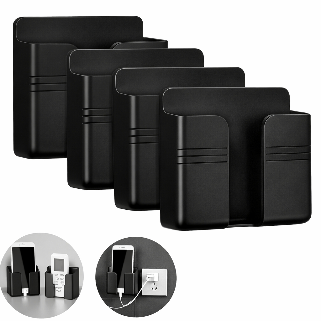 4 Suporte De Celular Parede Para Carregar Multiuso Preto Controle Plástico Organizador