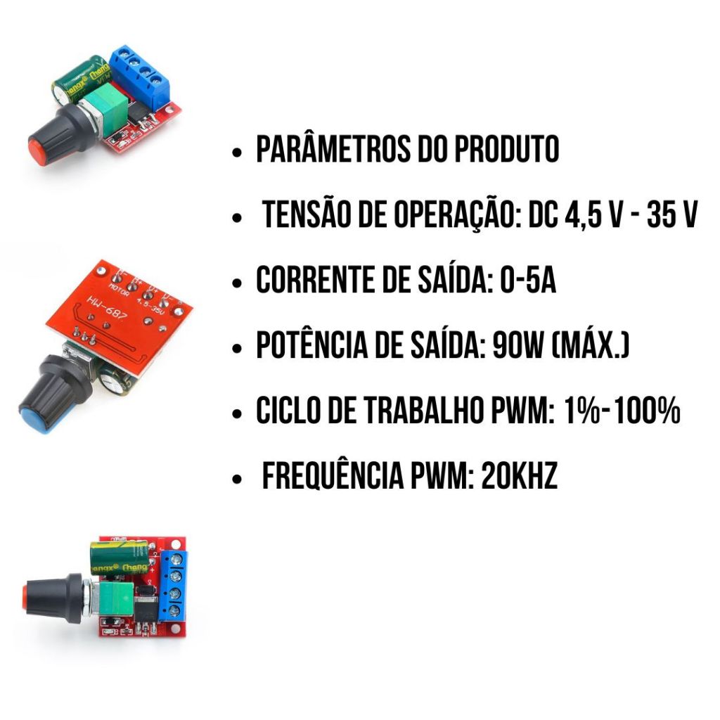 Controlador de velocidade PWM para motor DC 4.5V-35V DC Dimmer Regulador Ajustável