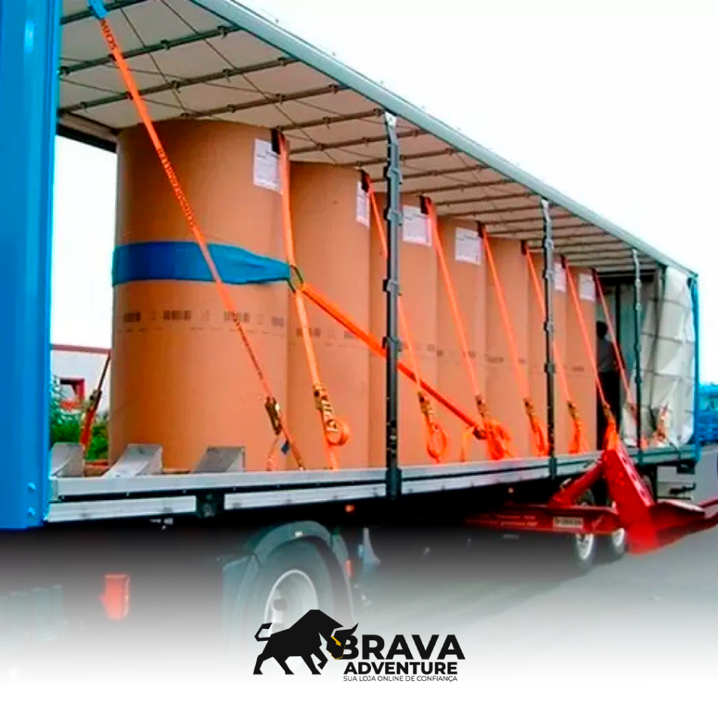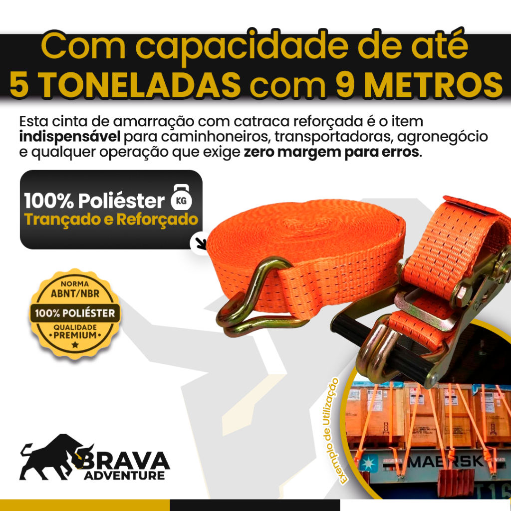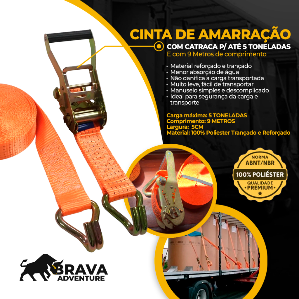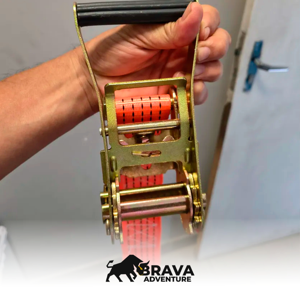 Kit Cinta de Amarração 5 Ton 9 Metros Com Catraca Reforçada Resistente Brava Adventure Uso Profissional Carreta Caminhão