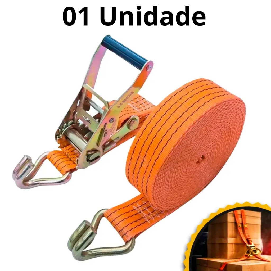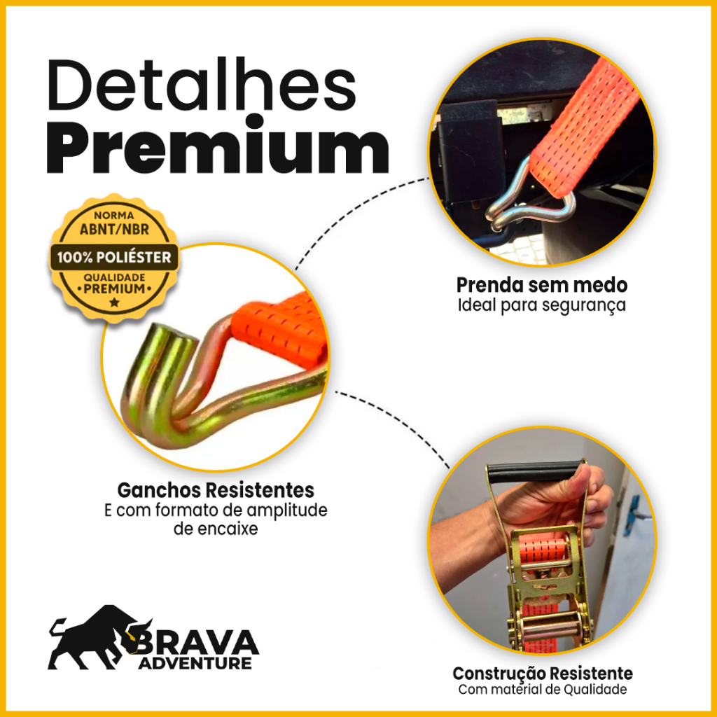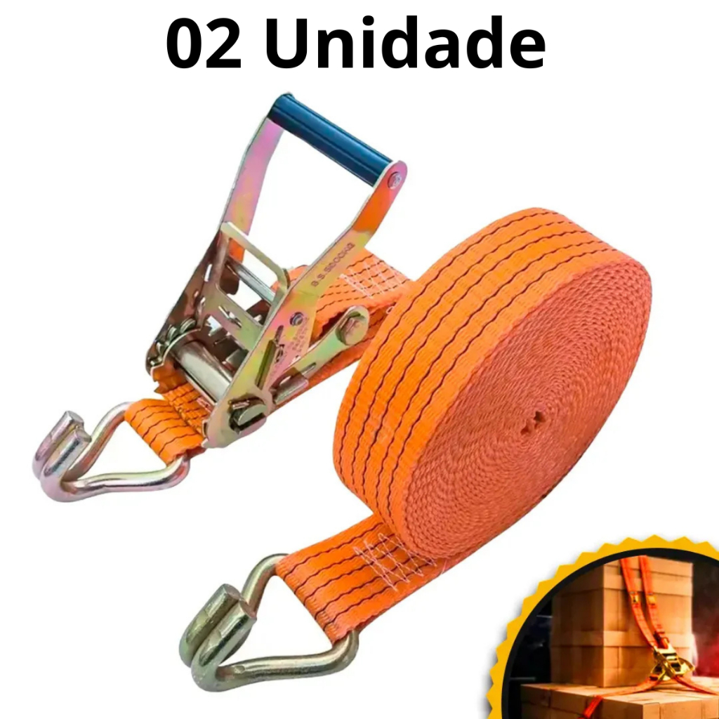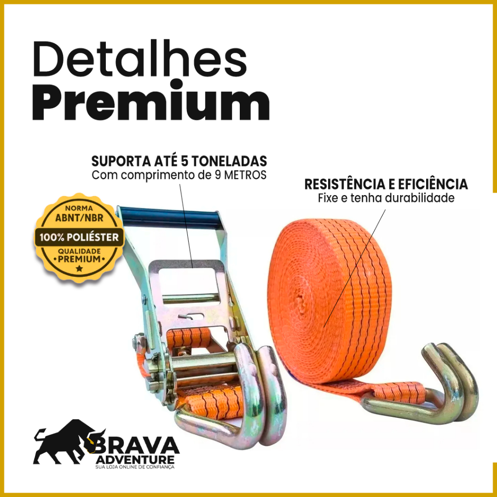 Kit Cinta de Amarração 5 Ton 9 Metros Com Catraca Reforçada Resistente Brava Adventure Uso Profissional Carreta Caminhão