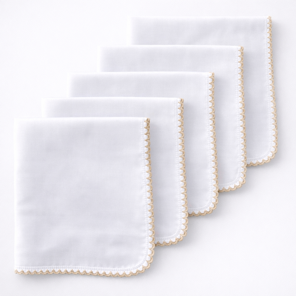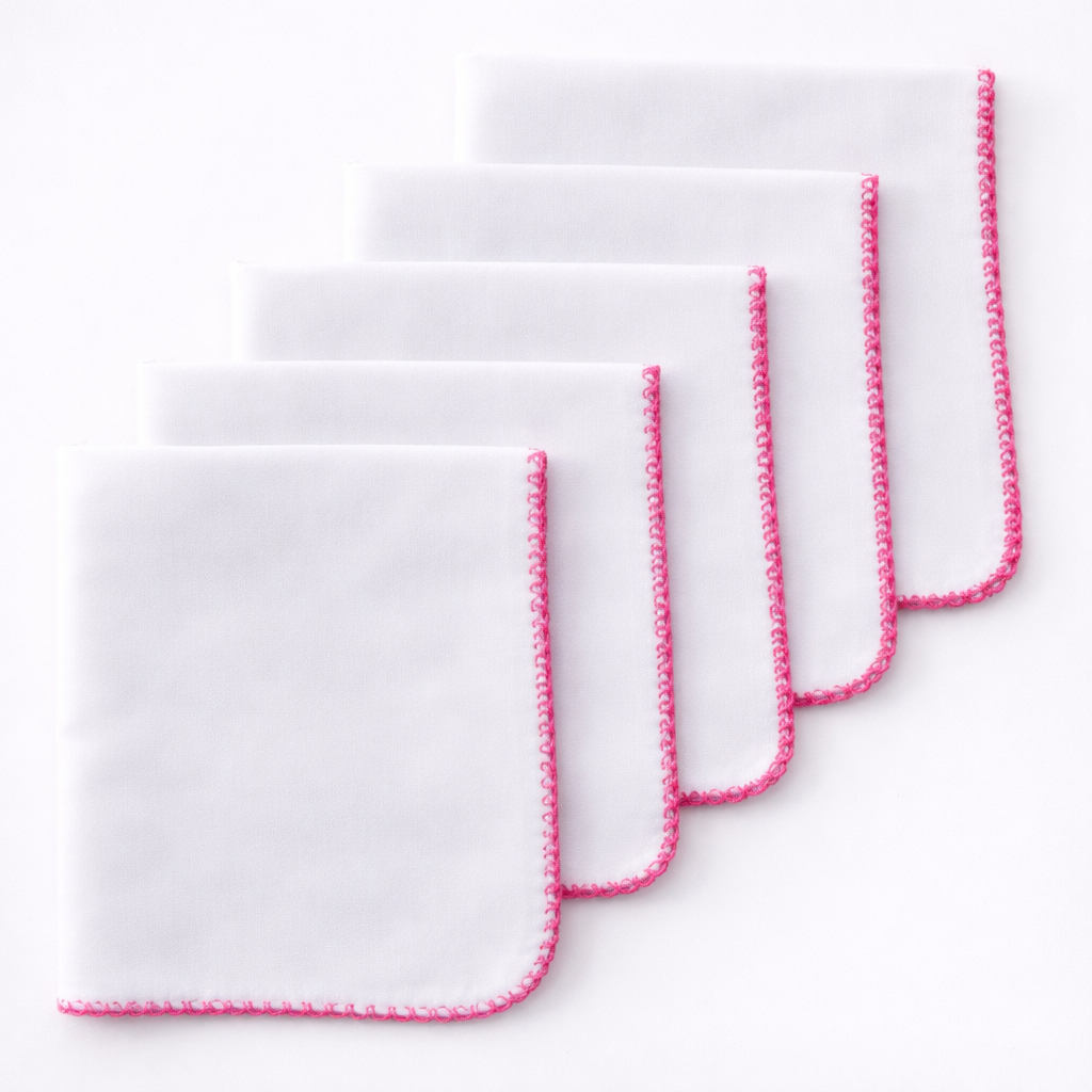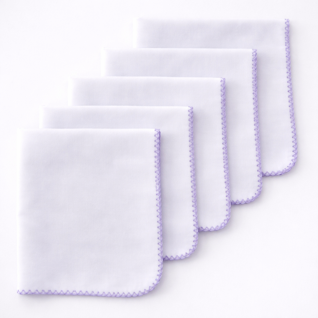 Kit 5 Fraldas de Boca Babete Malha Branca Dupla 100% Algodão com Acabamento Delicado para Bebê