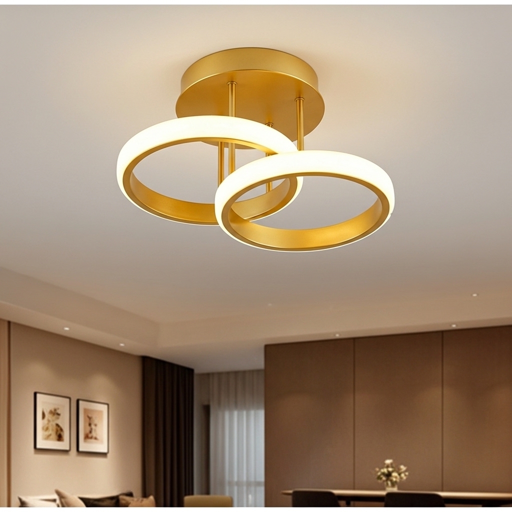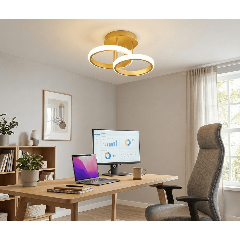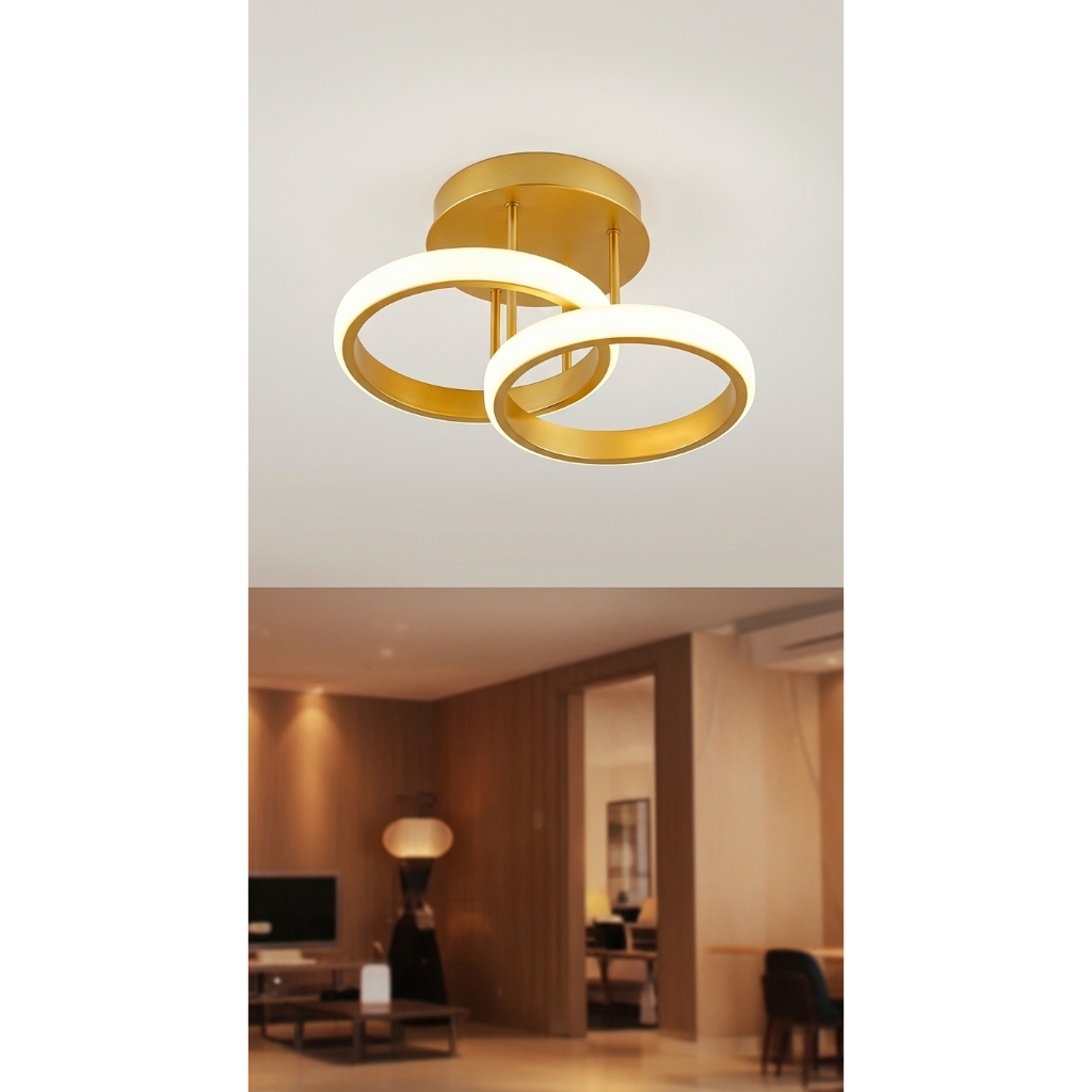 Luminária de Teto LED Solena Orbis 24W Anel Duplo Dourado Plafon Lustre com Design Moderno