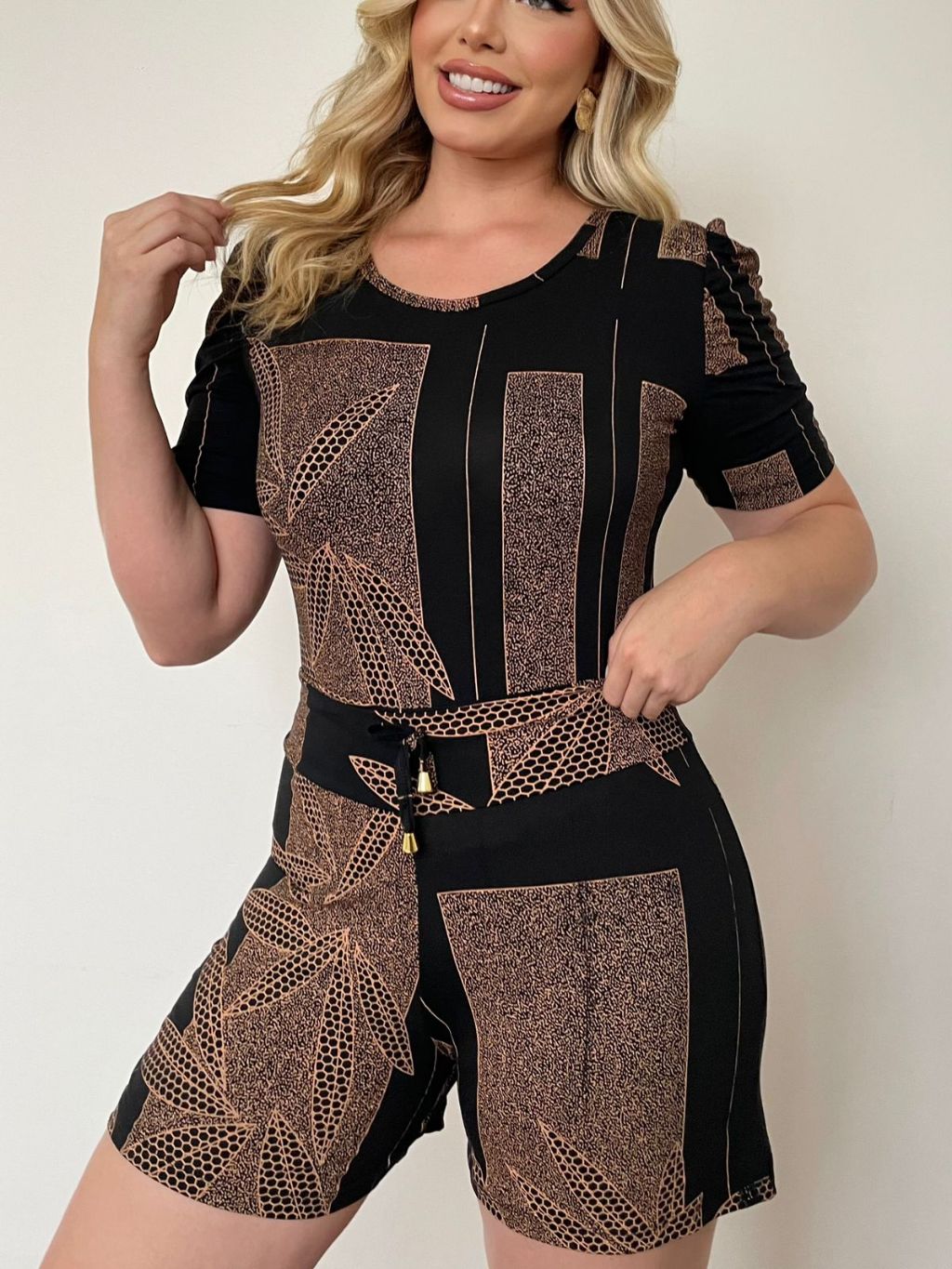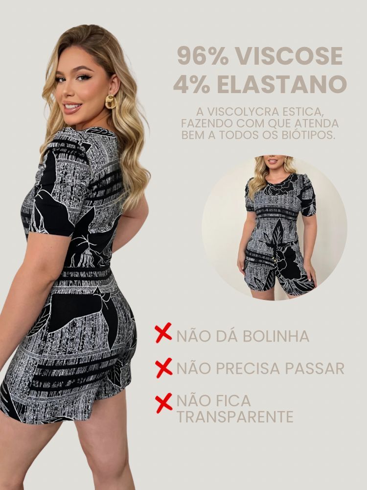 Conjunto Feminino Short e Blusa Estampado Viscolycra Casual Verão Confortável Malha Fria