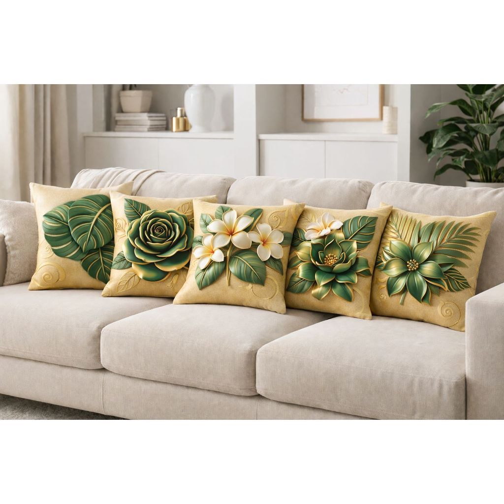 Kit 5 Capa para Almofada Floral Sala Decorativas com Zíper 0.45x0.45cm