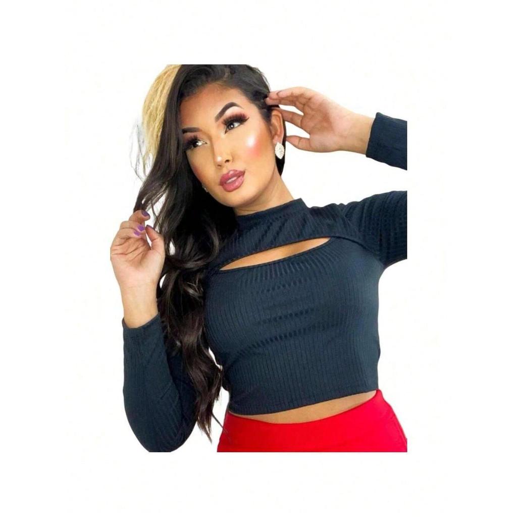 Cropped Decote Manga Longa Premium Versátil Chique Blogueira Estilo Filme Confortável Veste Bem Primavera Verão