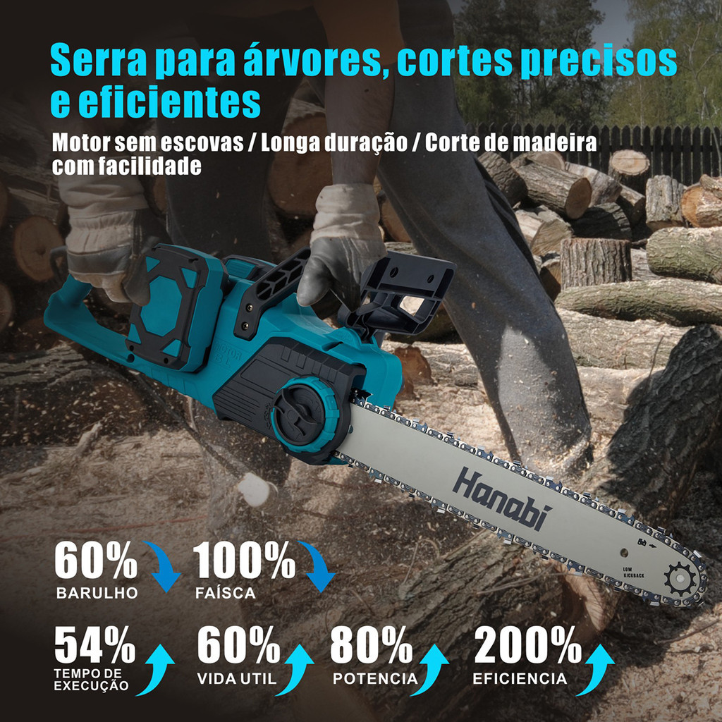 【Hanabi】Motosserra Brushless 40v 16 Polegadas 2 Baterias Sabre 46cm Azul-petróleo 127/220v