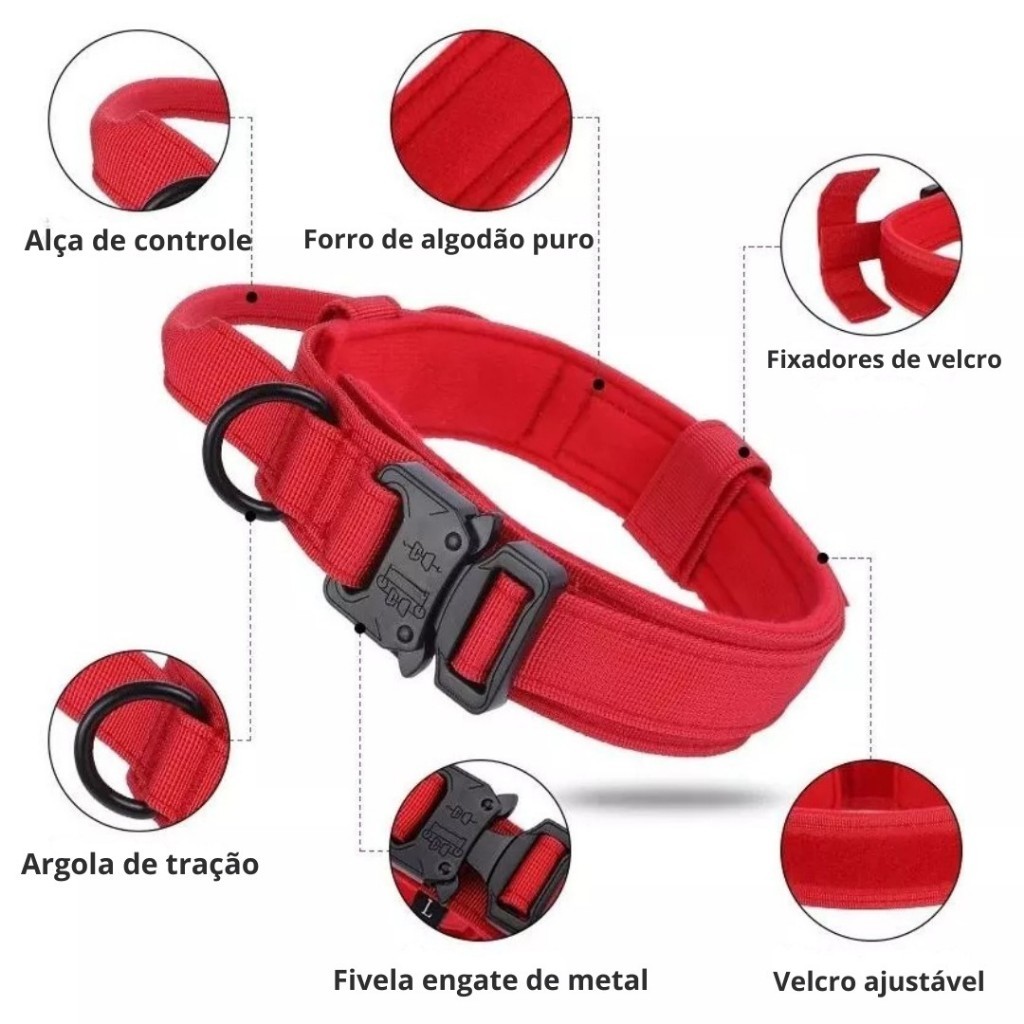 Coleira Tática Militar Ajustável Resistente Para Cachorro Com Alça Treinamento Pet Grande/Médio Porte LR-0239