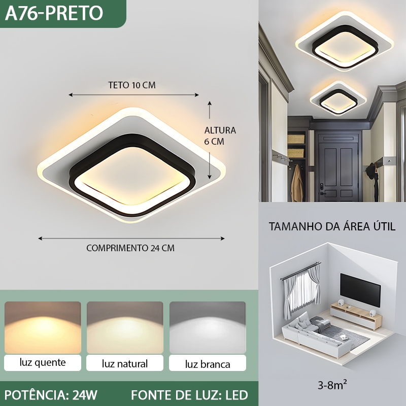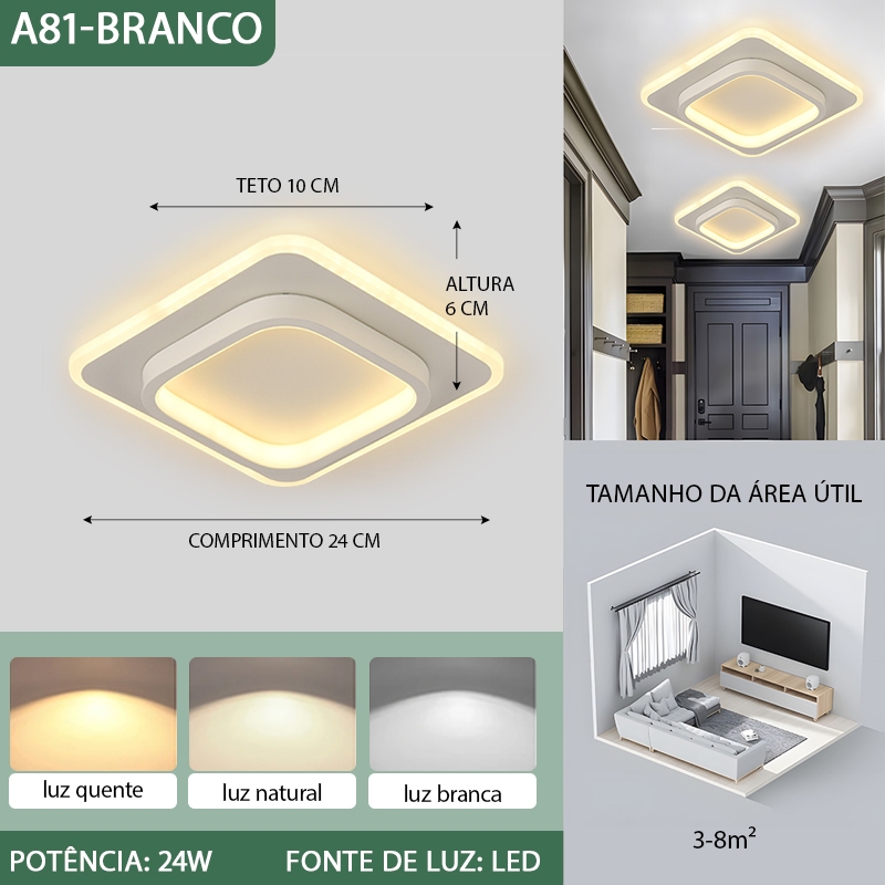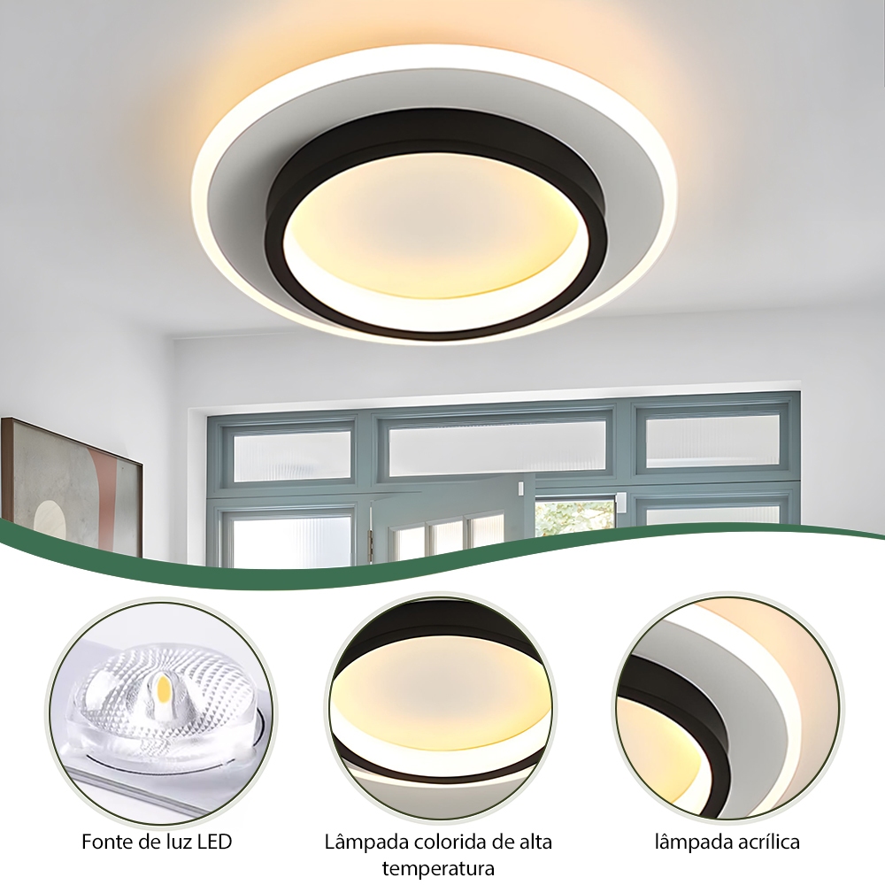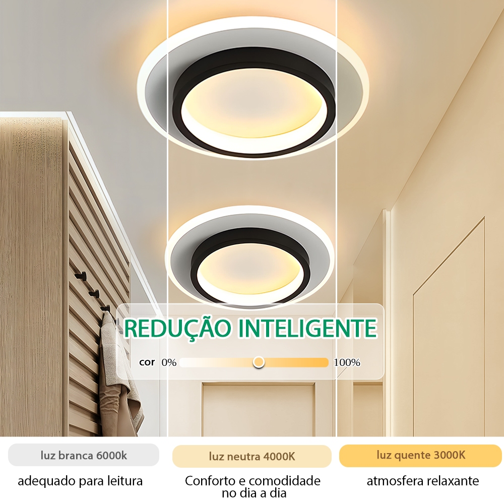 Plafon Luminária de Teto 3 Cores LED Minimalista para Sala e Corredor Branco Quente 110V-220V Fácil de Instalar