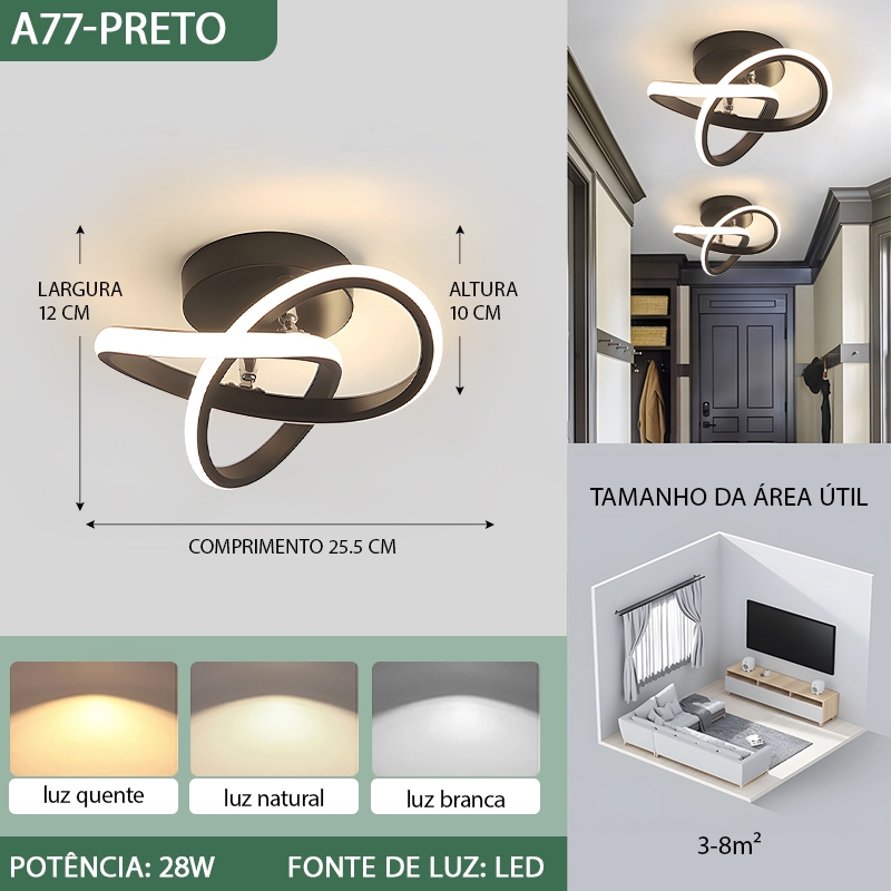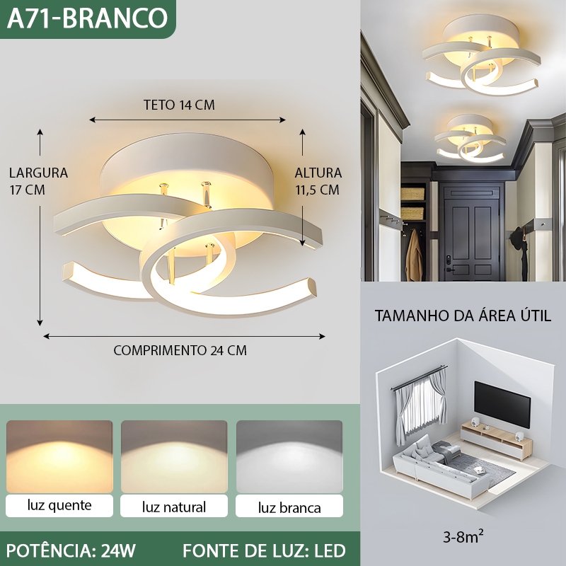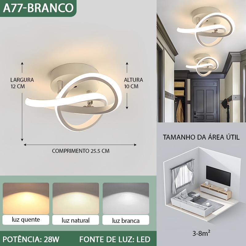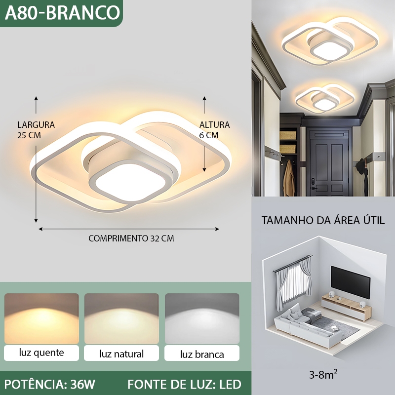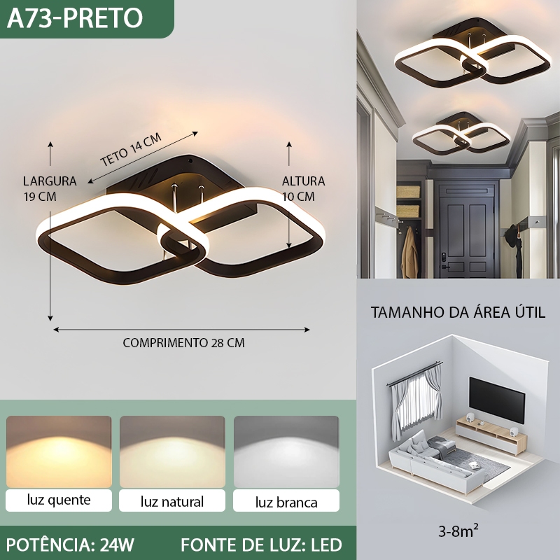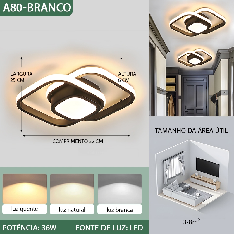 Plafon Luminária de Teto 3 Cores LED Minimalista para Sala e Corredor Branco Quente 110V-220V Fácil de Instalar
