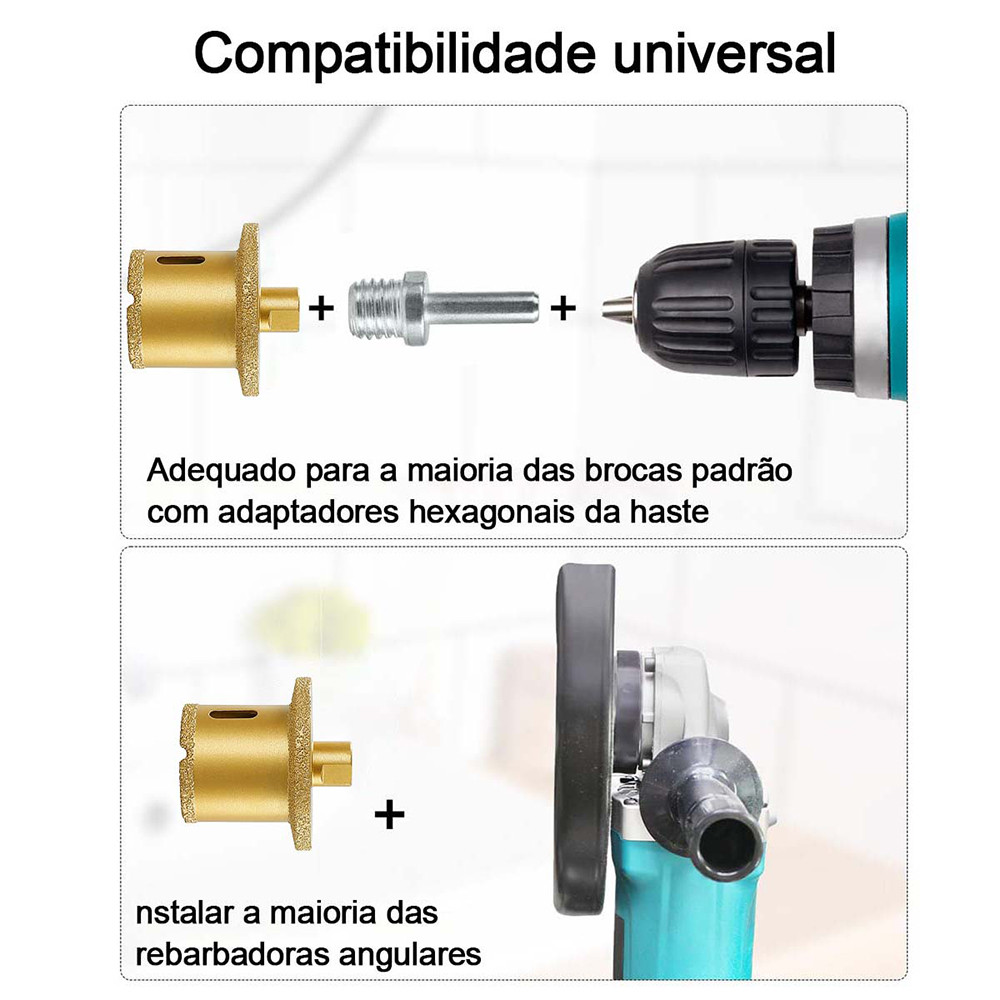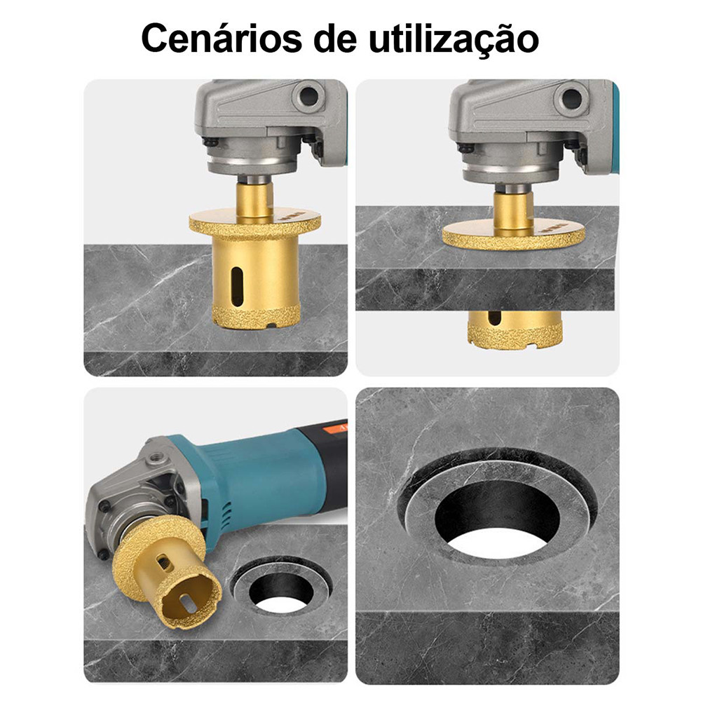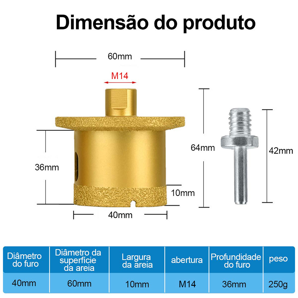 Serra Copo Diamantada 40mm para Porcelanato e Mármore, Profundidade 40mm, Rosca M14 para Esmerilhadeira