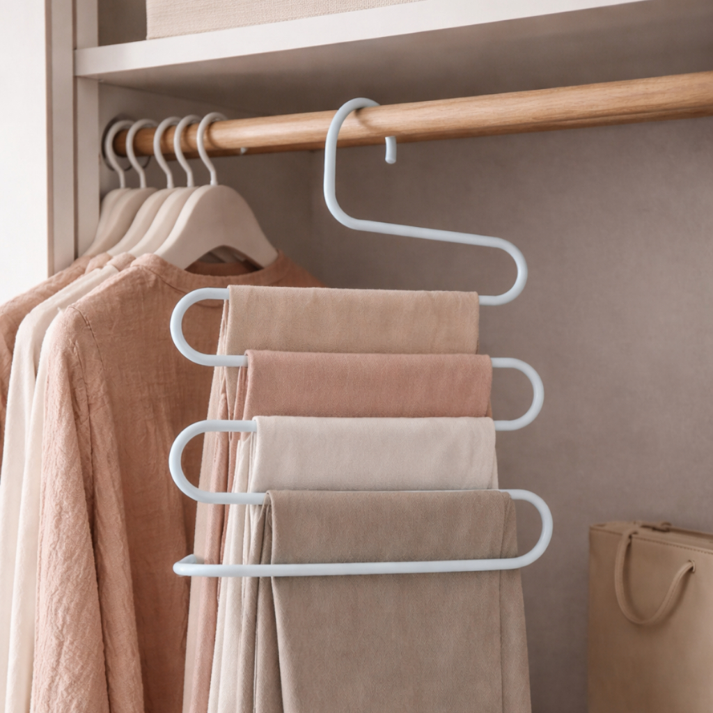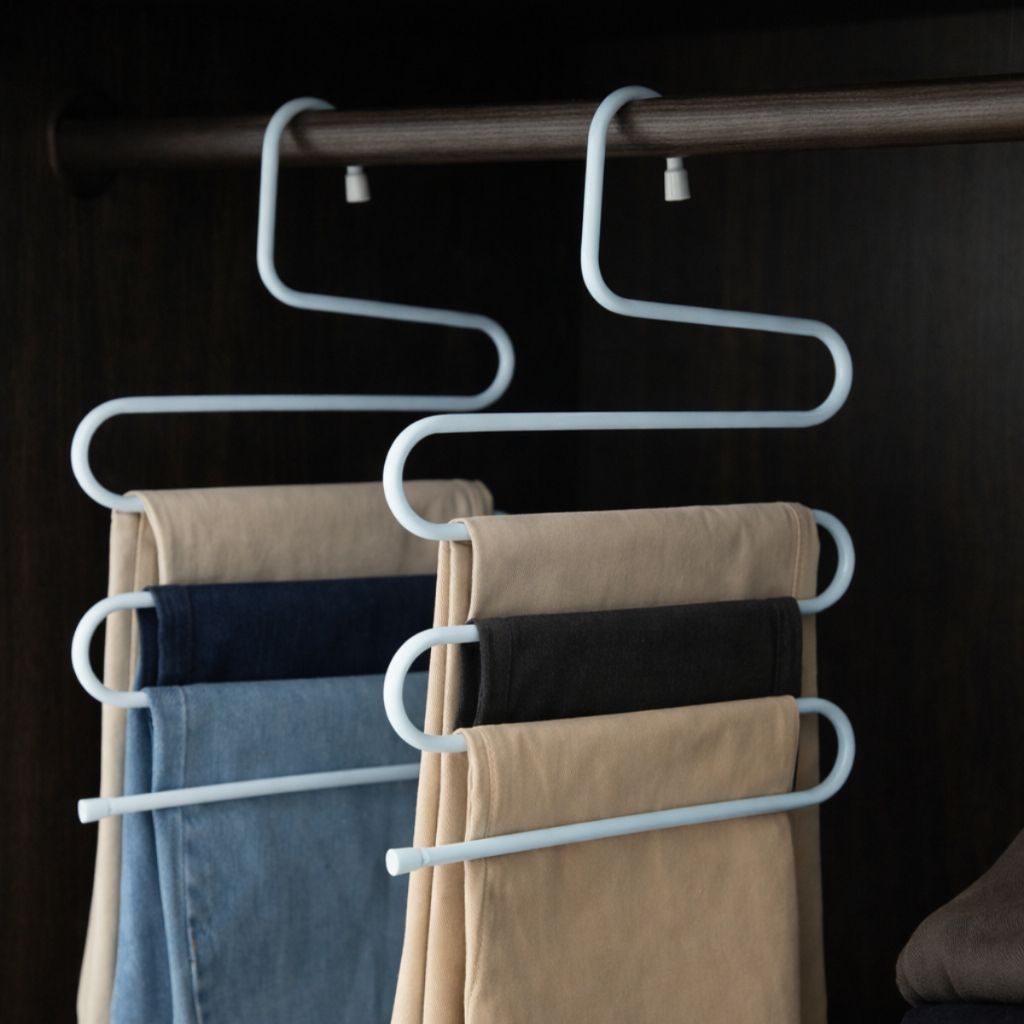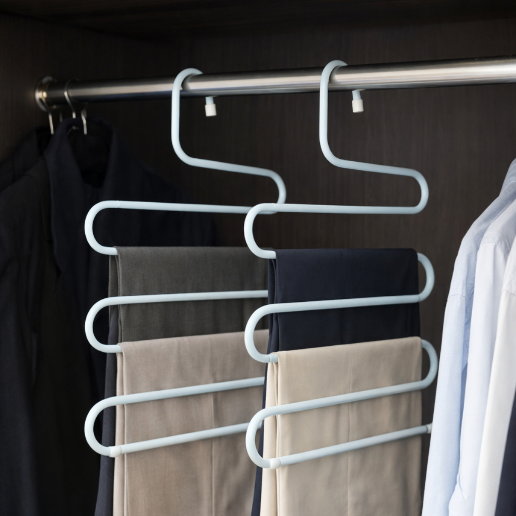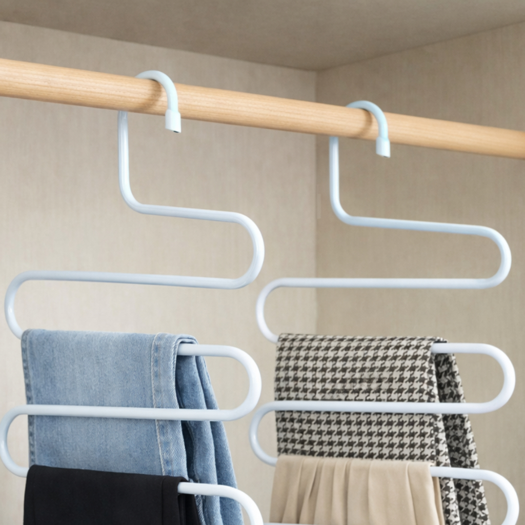 Kit Com 2 Cabides De Inox Com 5 Divisórias Para Calças Branco