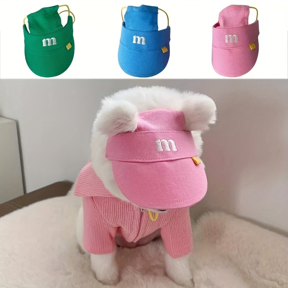Chapéu de sol ajustável Pet de estimação com bordado Letra M proteção solar de estimação Design divertido