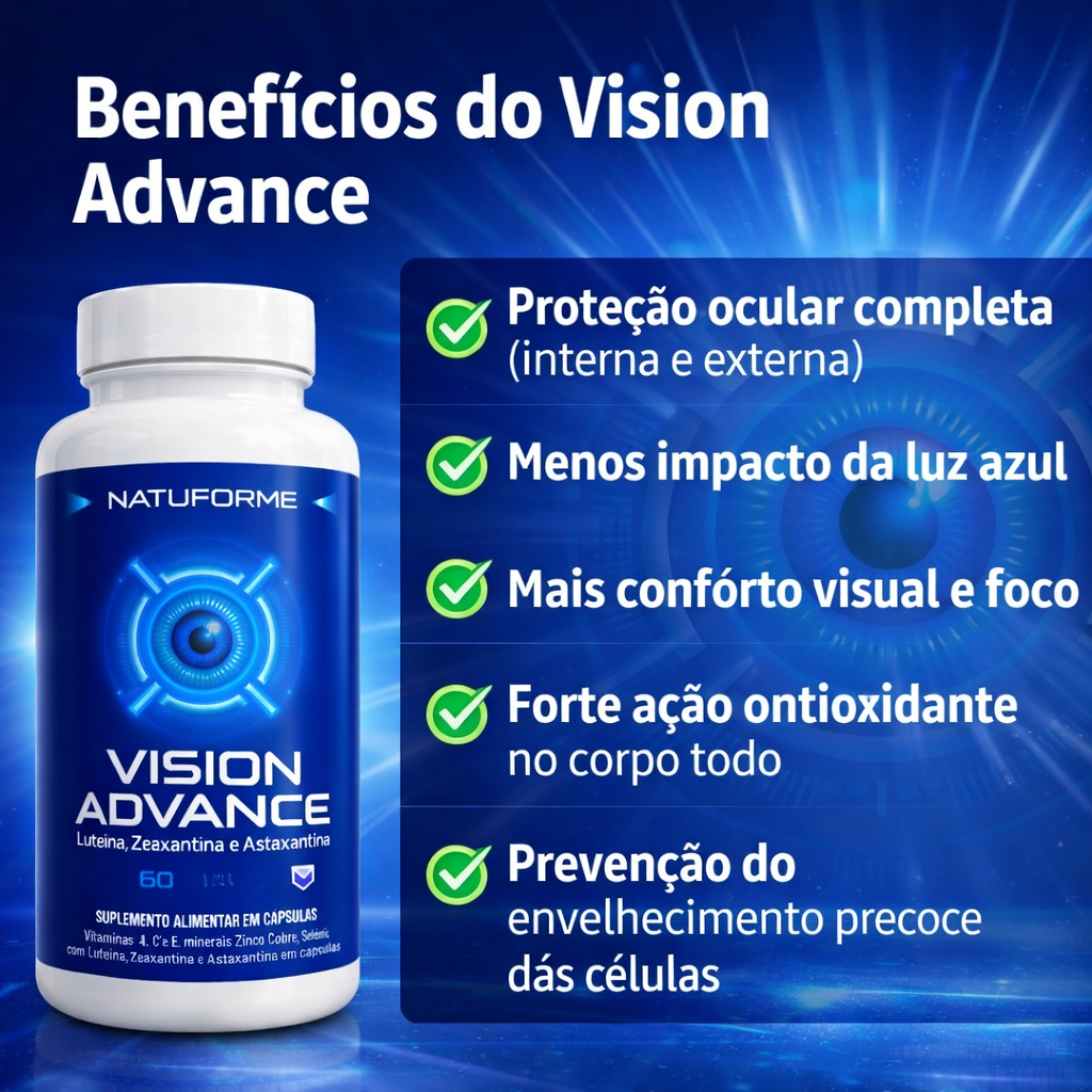 Luteina Zeaxantina e Astaxantina ORIGINAL Suplemento Visão Vision Advance - KIT 03 POTES