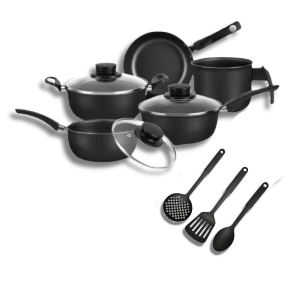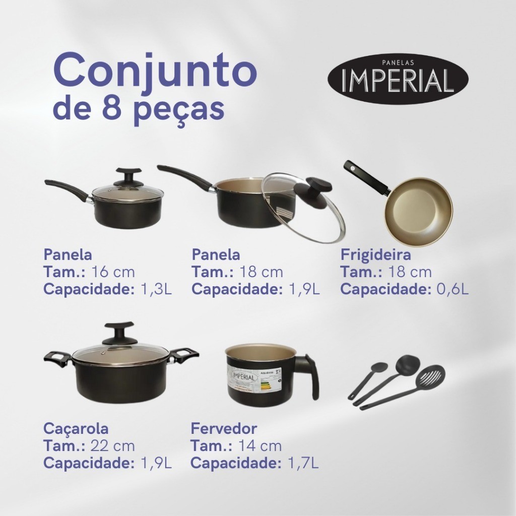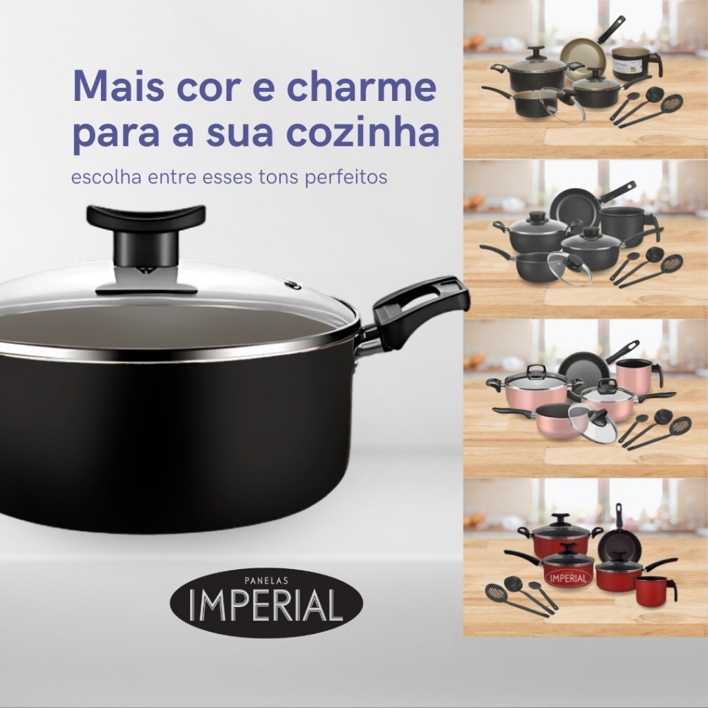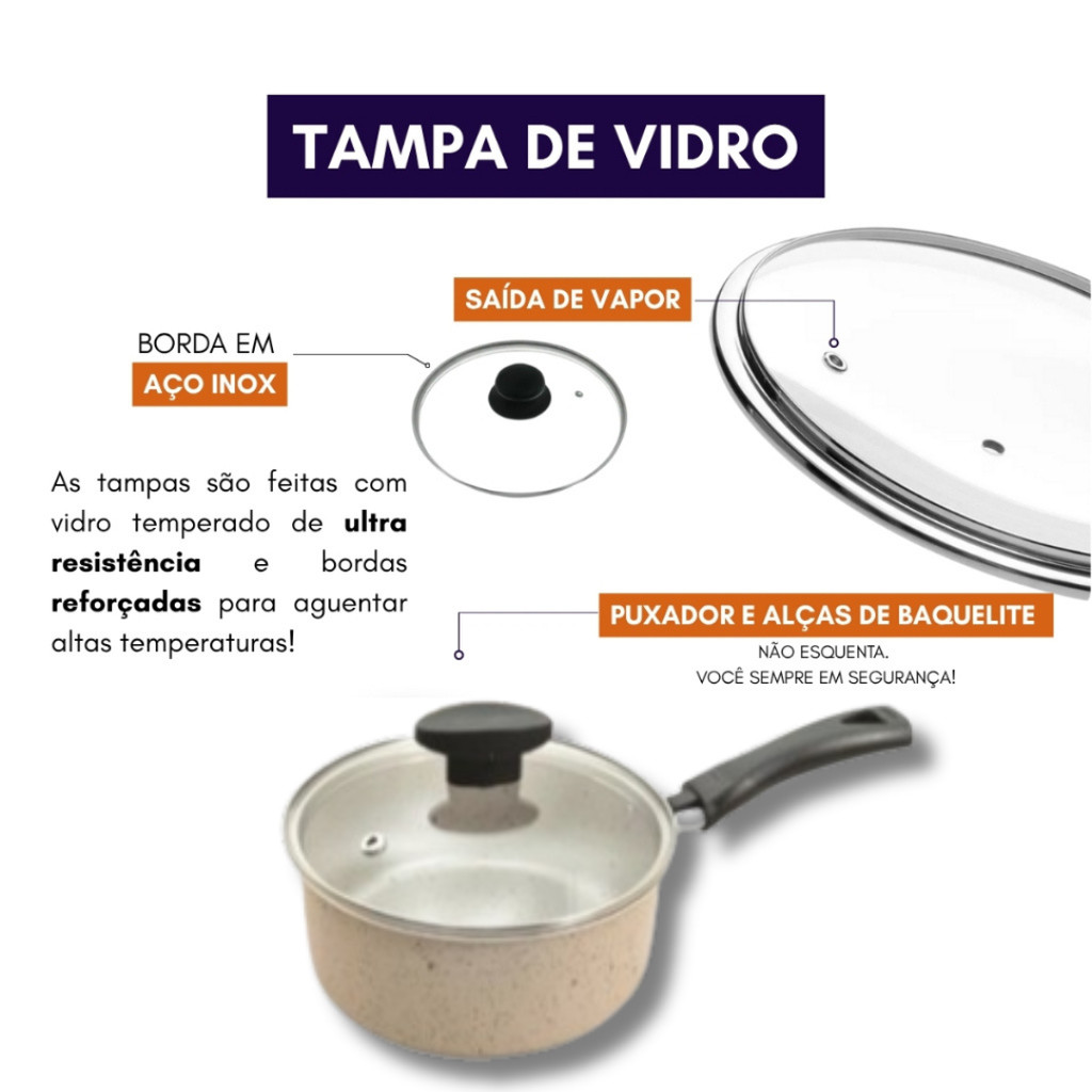 Conjunto de Panelas Antiaderente 8 Peças Teflon Premium 5 Camadas com Tampa de Vidro – MARF