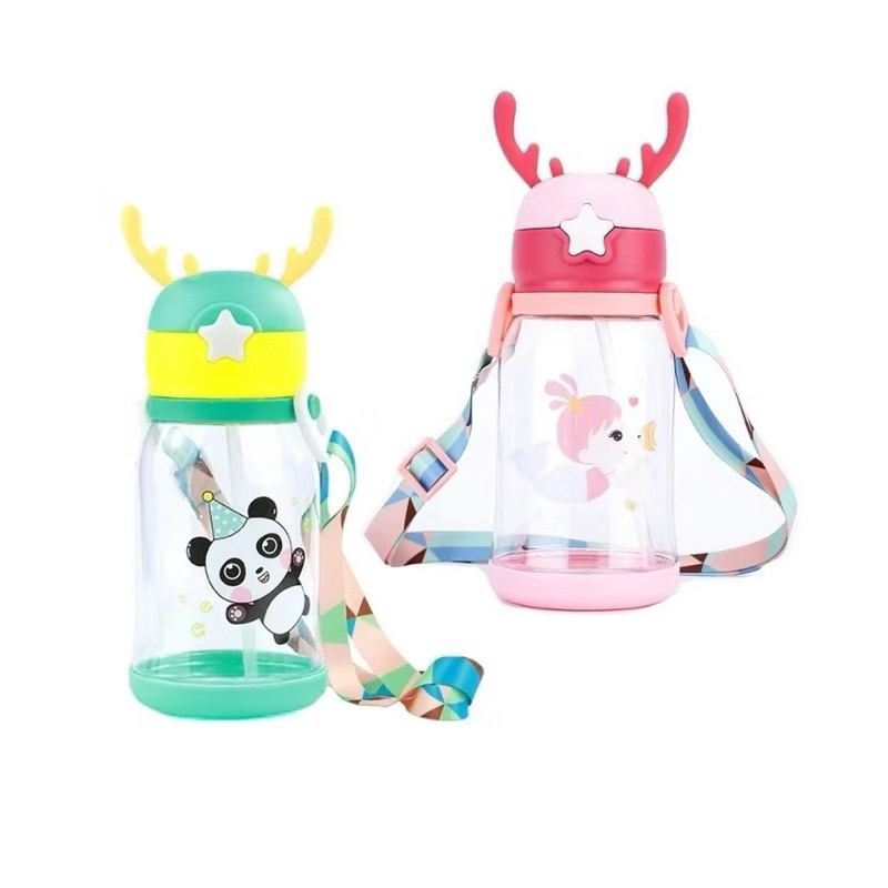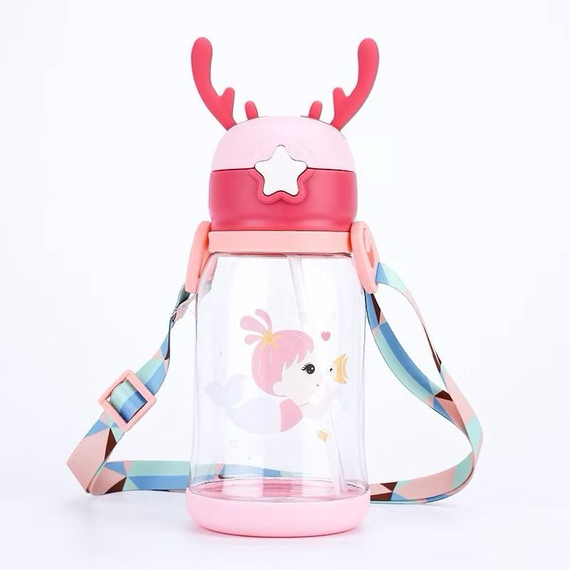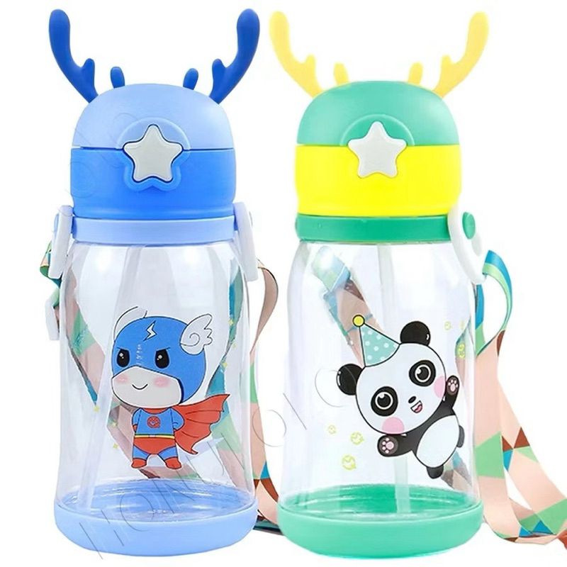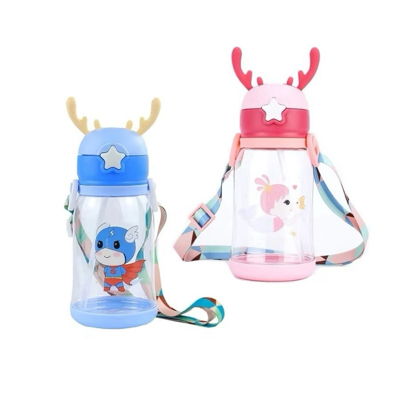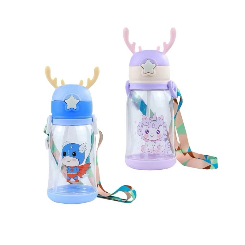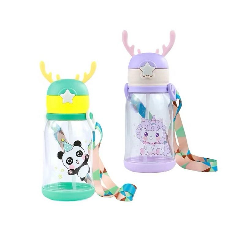 Garrafa Infantil 600ml com Canudo, Tampa e Alça Ajustável – Squeeze Escolar Resistente | Cores Variadas