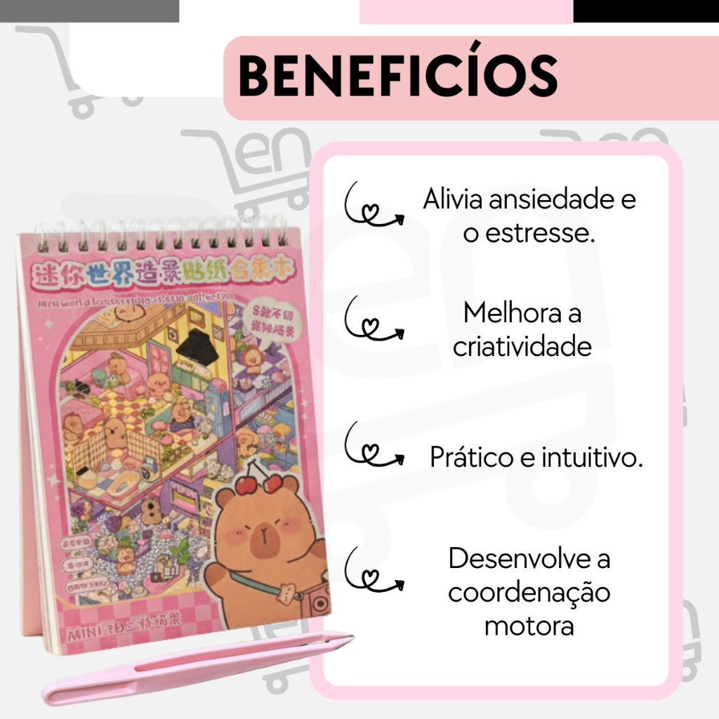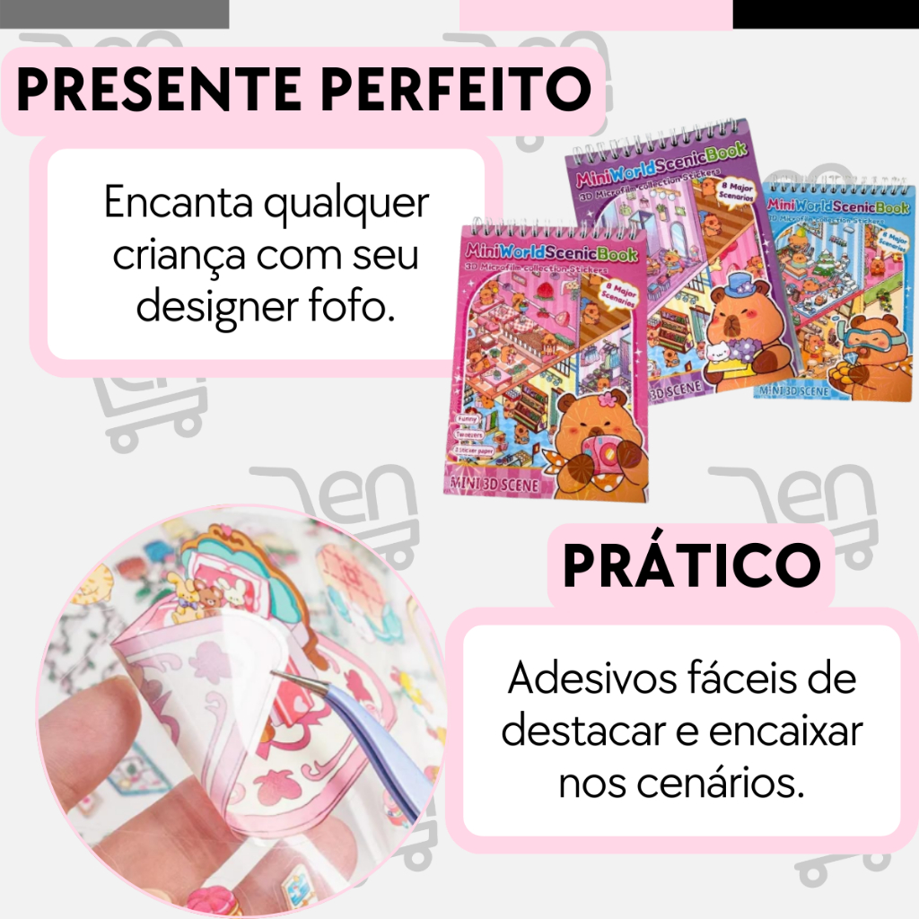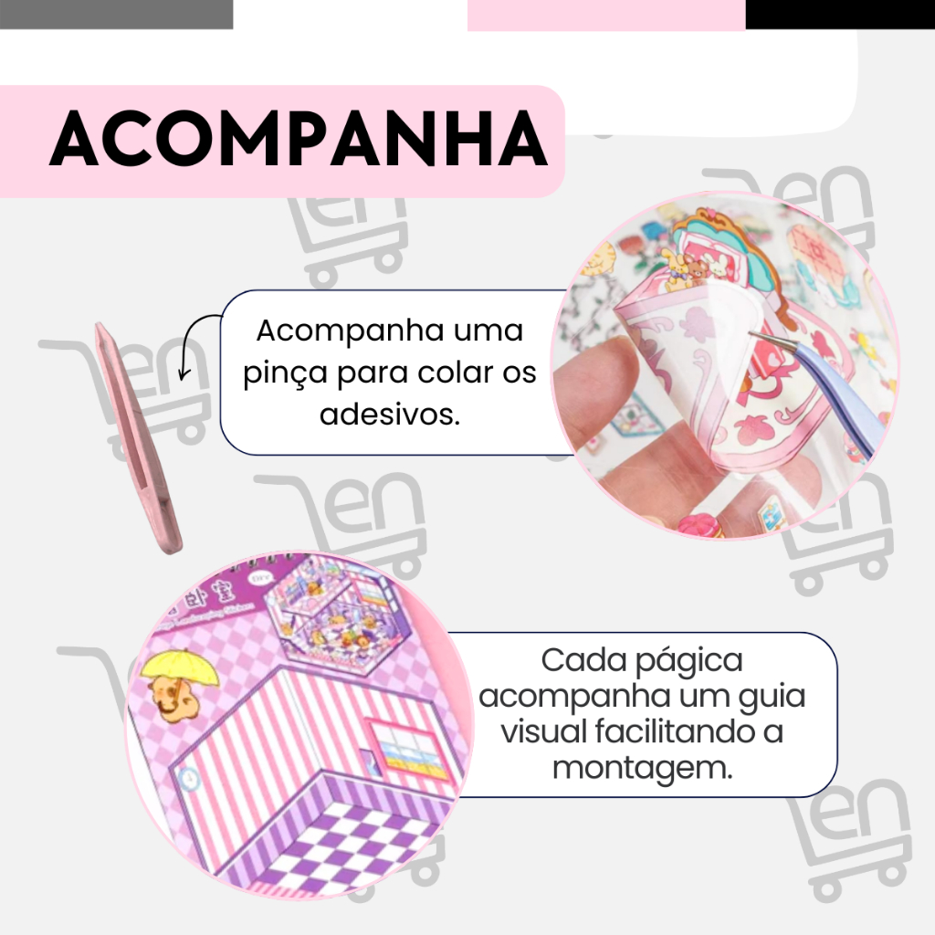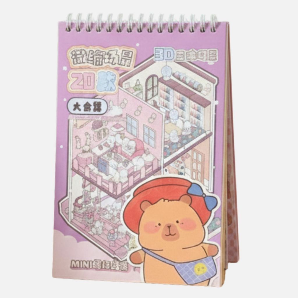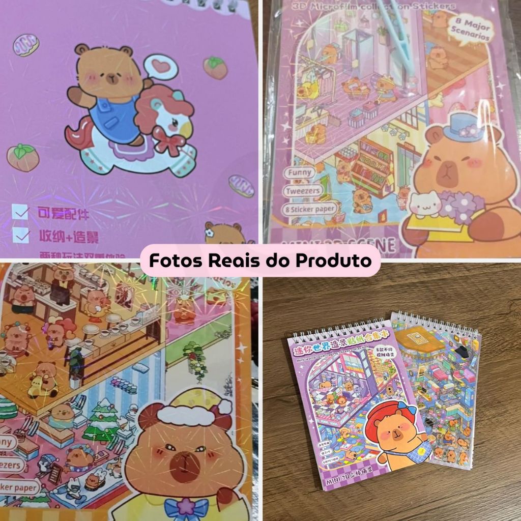 Caderno Adesivo 3D 8 Cenarios Criativo Scrapbook Diy Com Pinça Montar Comodos