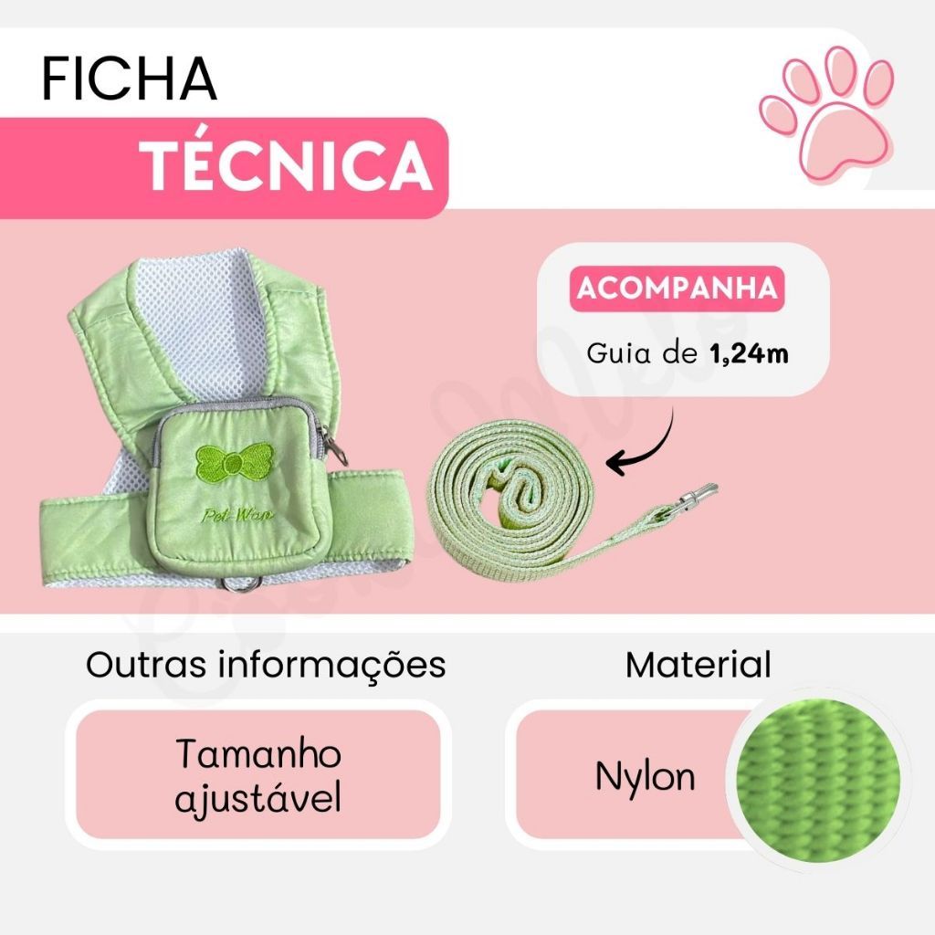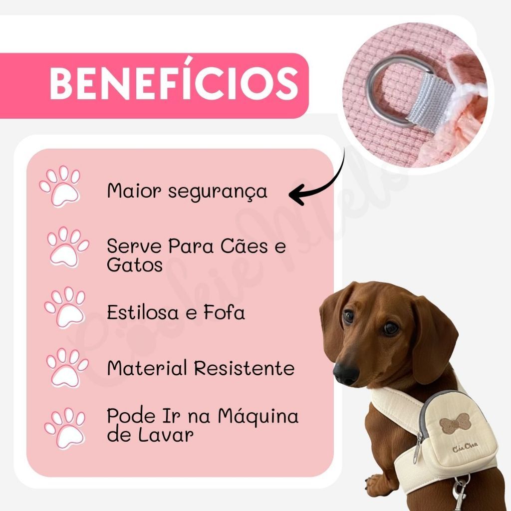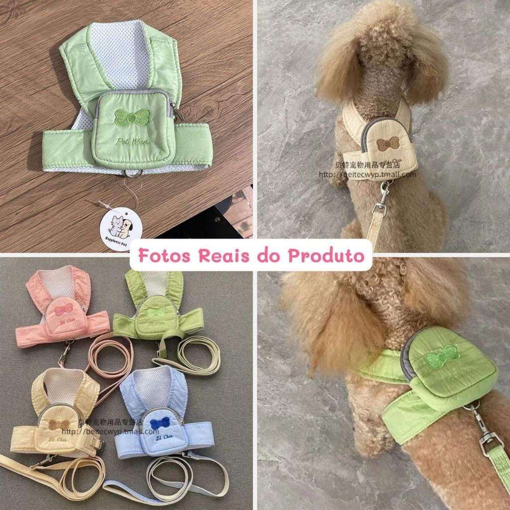 Coleira Guia Com Mochila Pet Cachorro Gato Peitoral Macho e Fêmea Passeio Viagem Festas