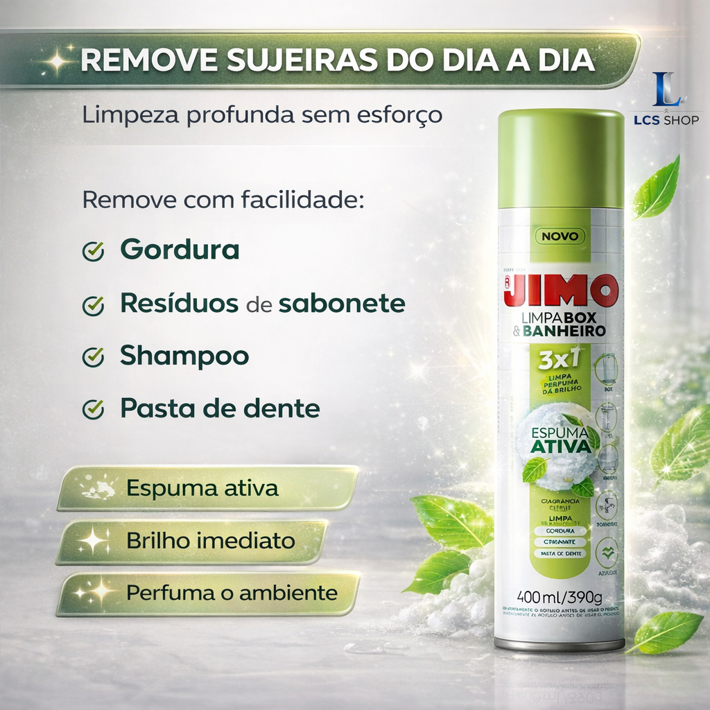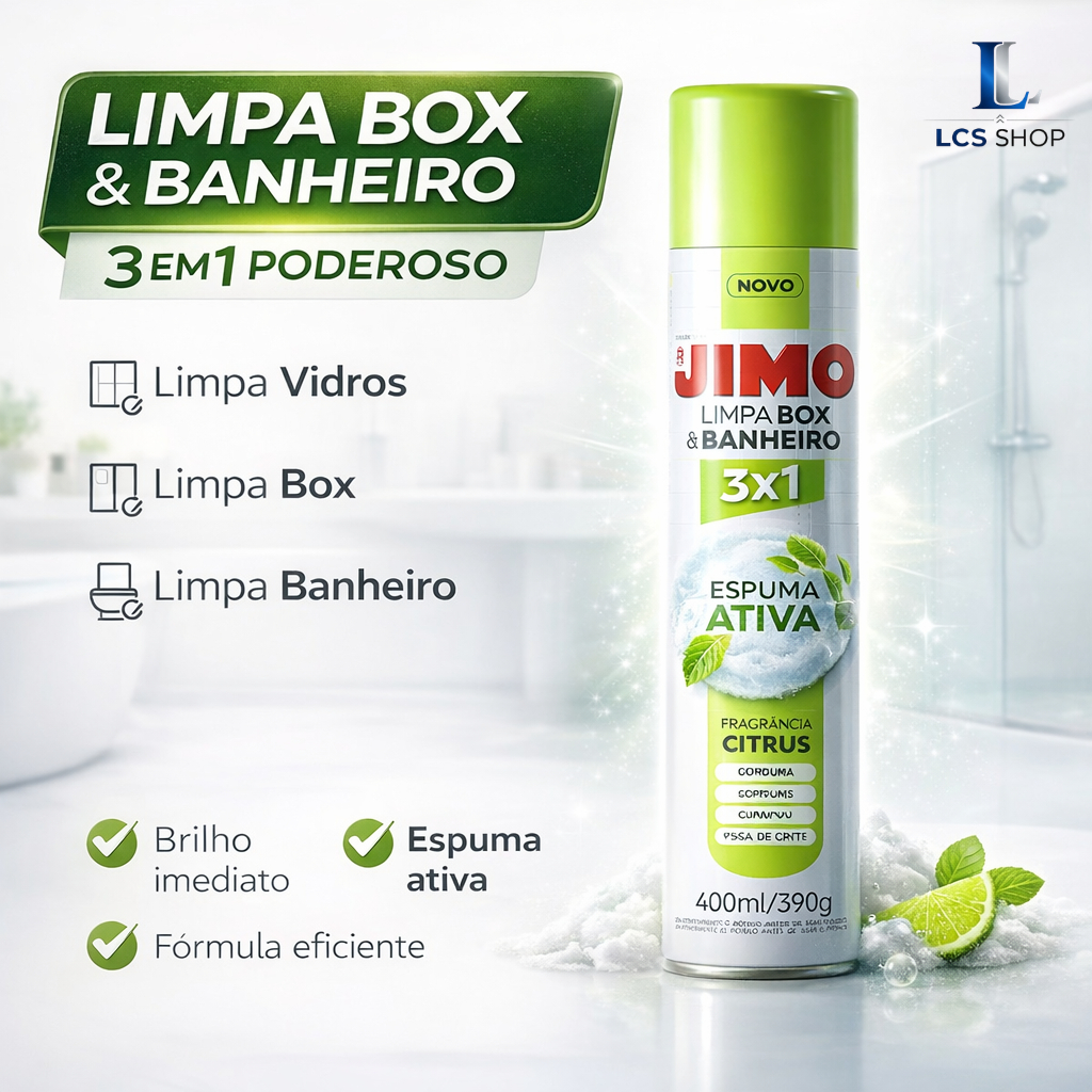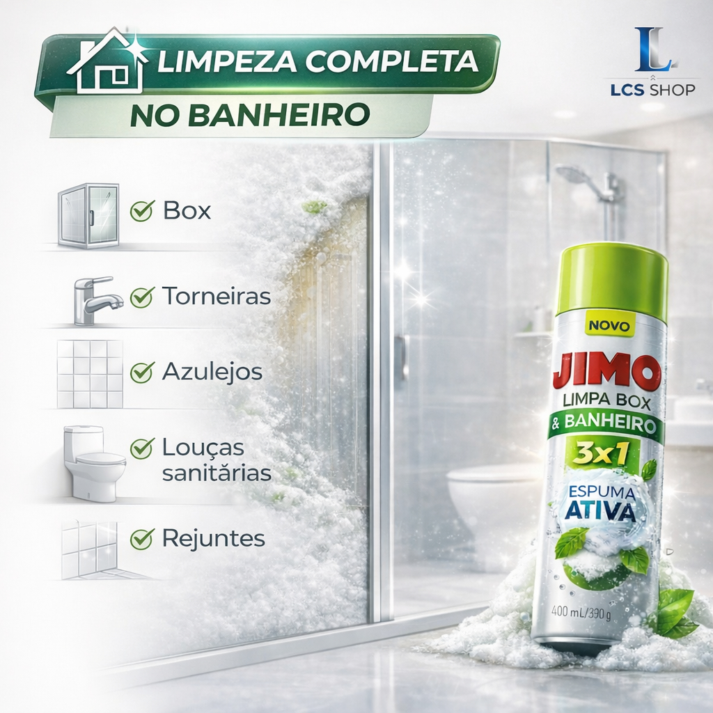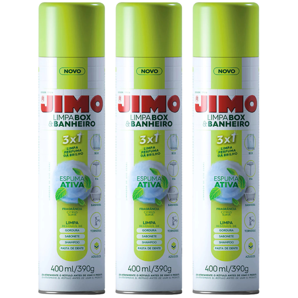 Limpa Box Banheiro Jimo Spray 400ml Antimofo Desengordurante Vidros Multiuso Limpeza Pesada