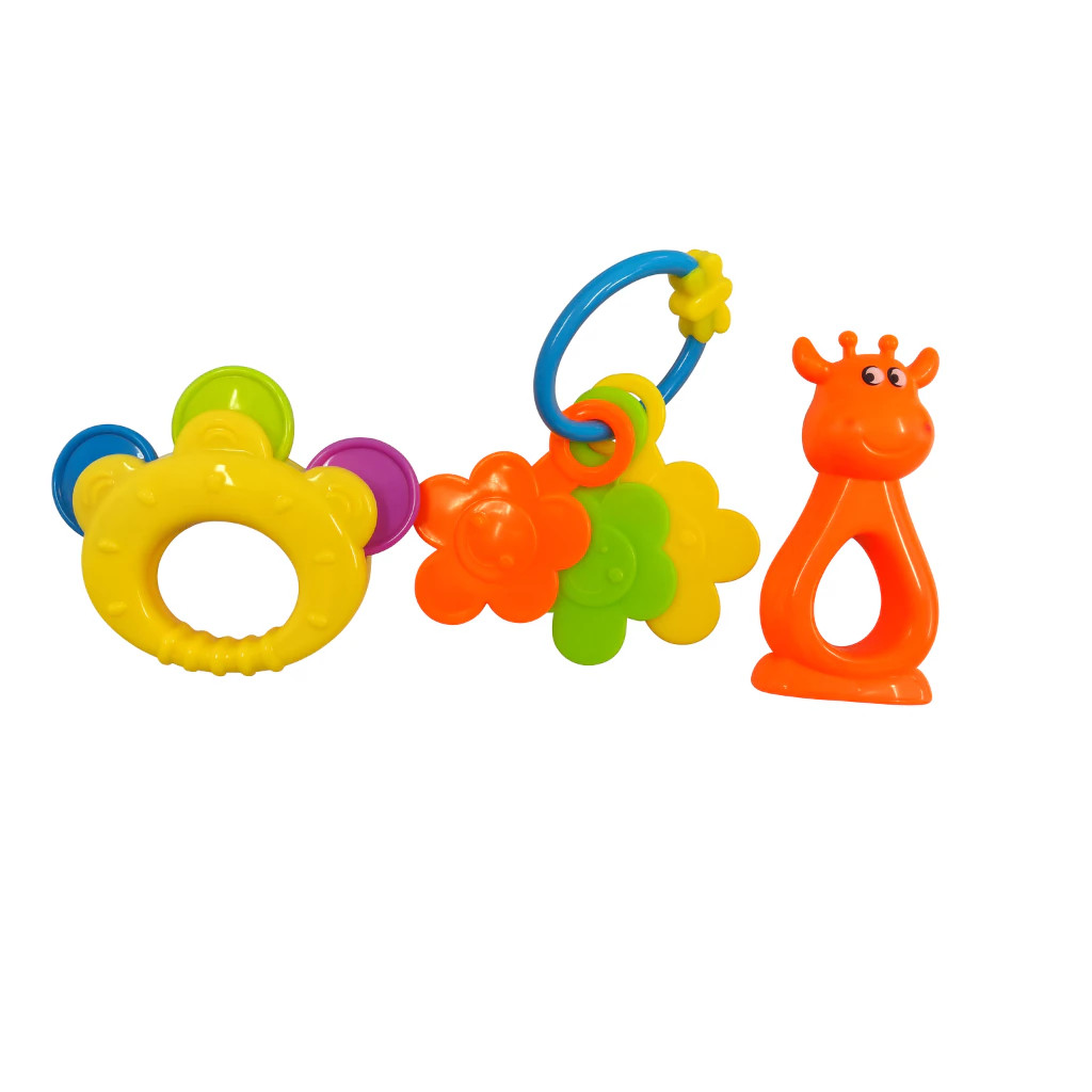 Brinquedo criança Kit 8 peças Mordedor para criança Sensorial Macio com Chocalho