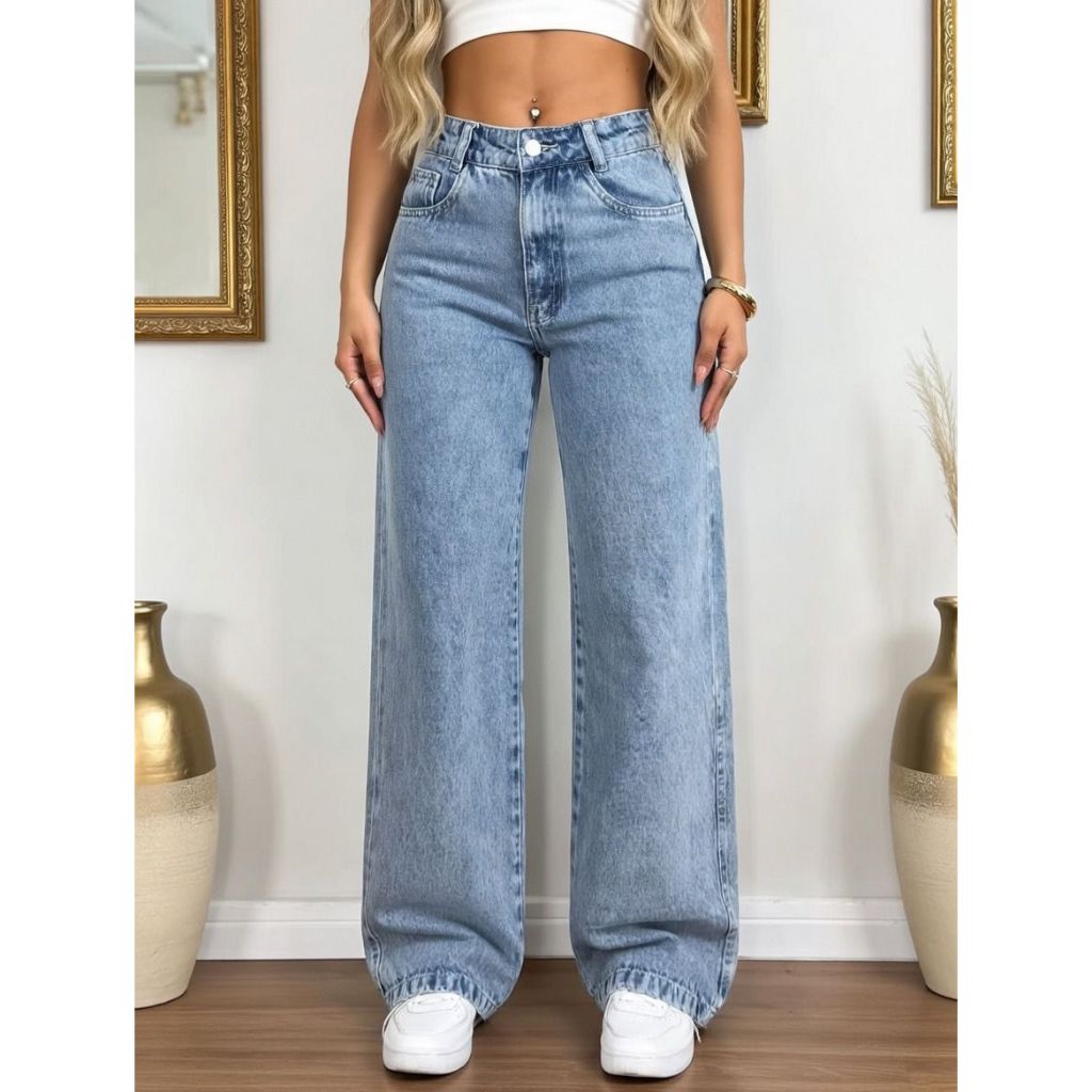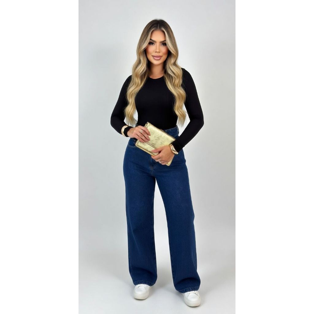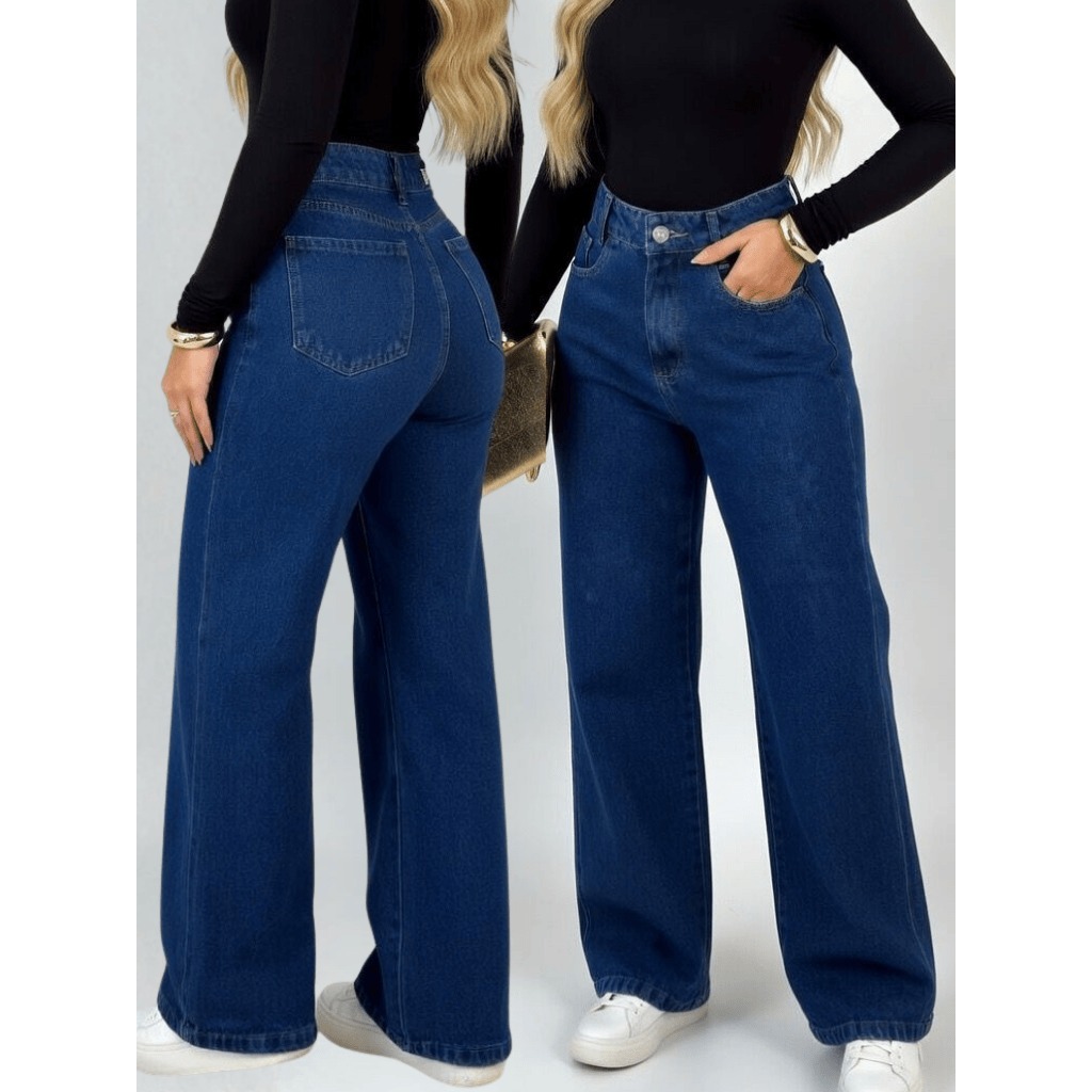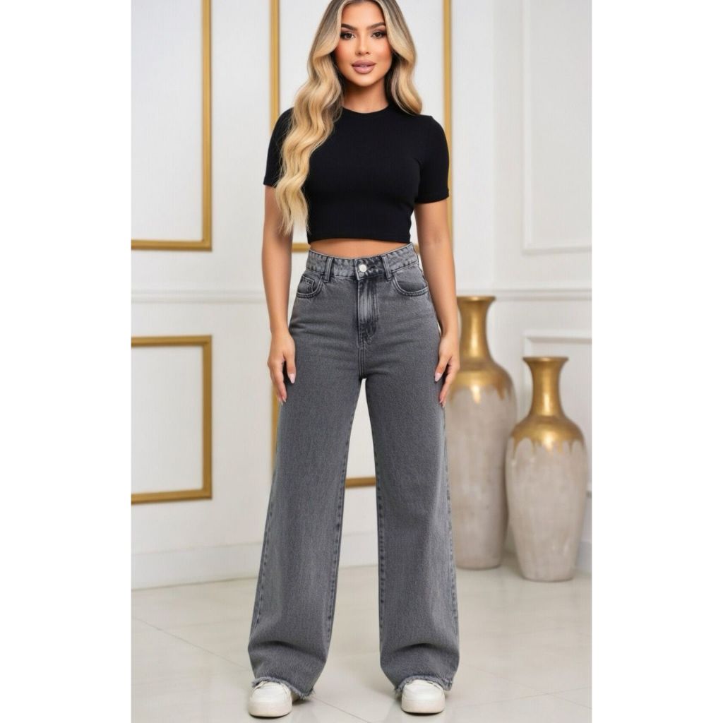 Calça Wid Leg ESCURA STONE Jeans Feminino Sem lycra