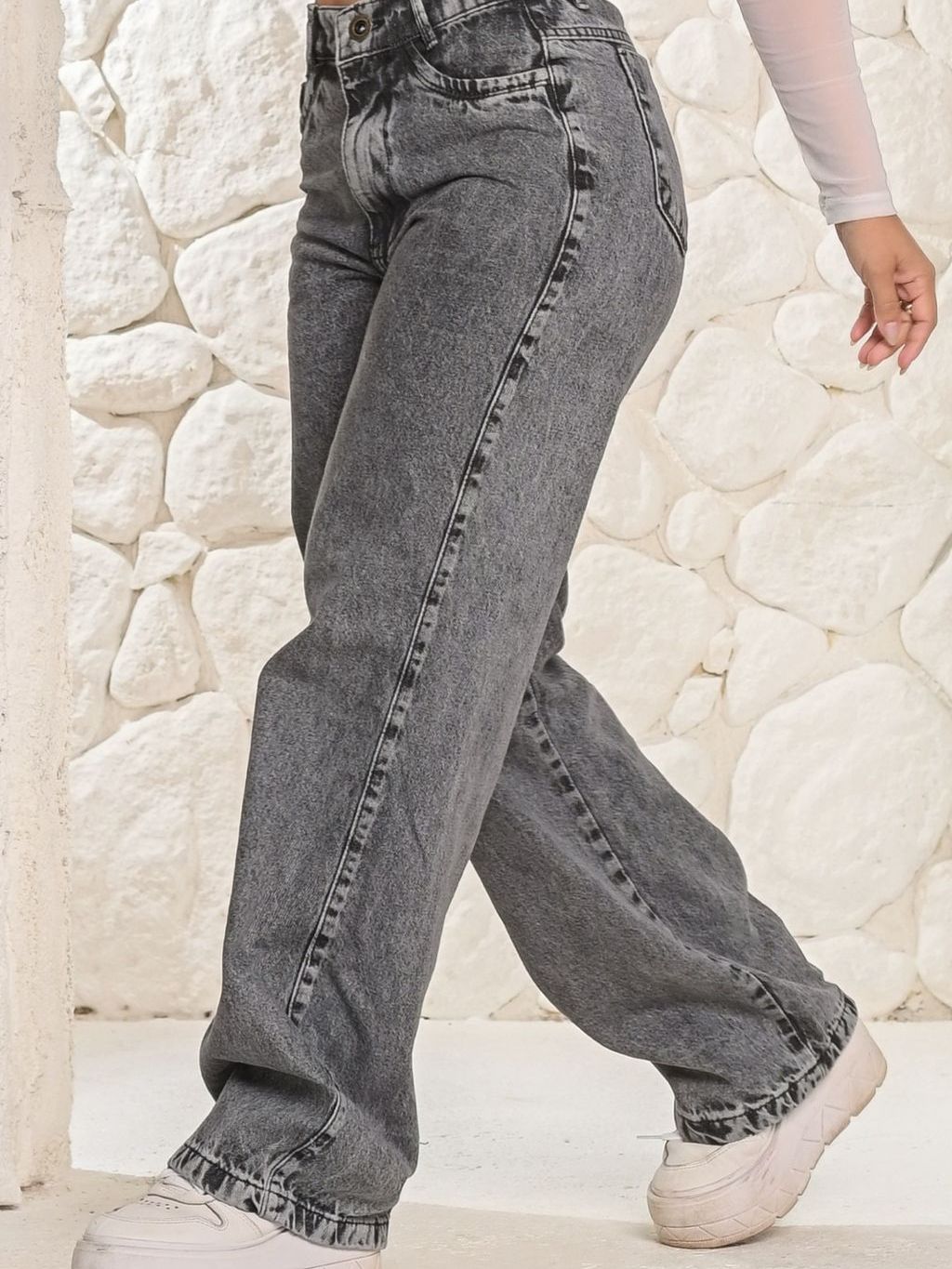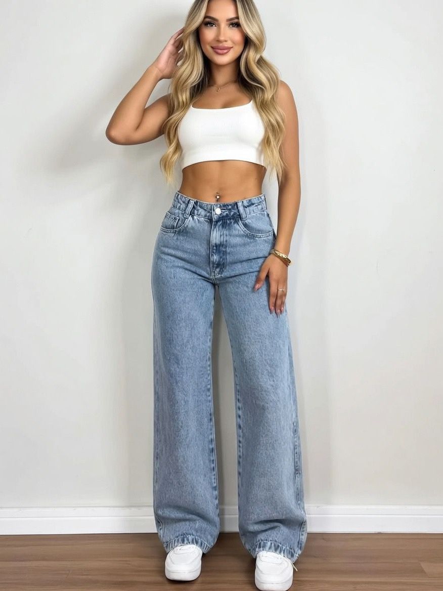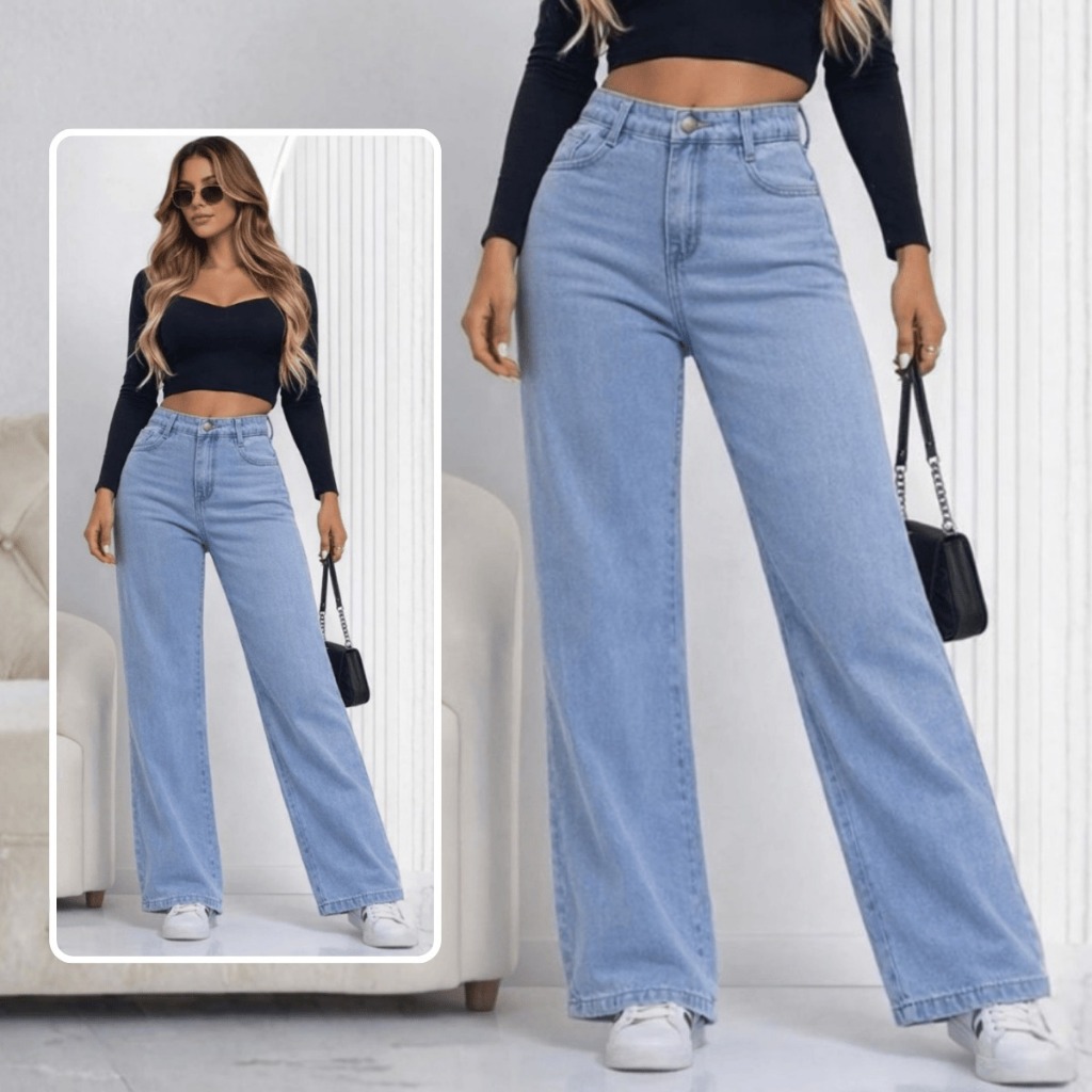 Calça Wid Leg ESCURA STONE Jeans Feminino Sem lycra