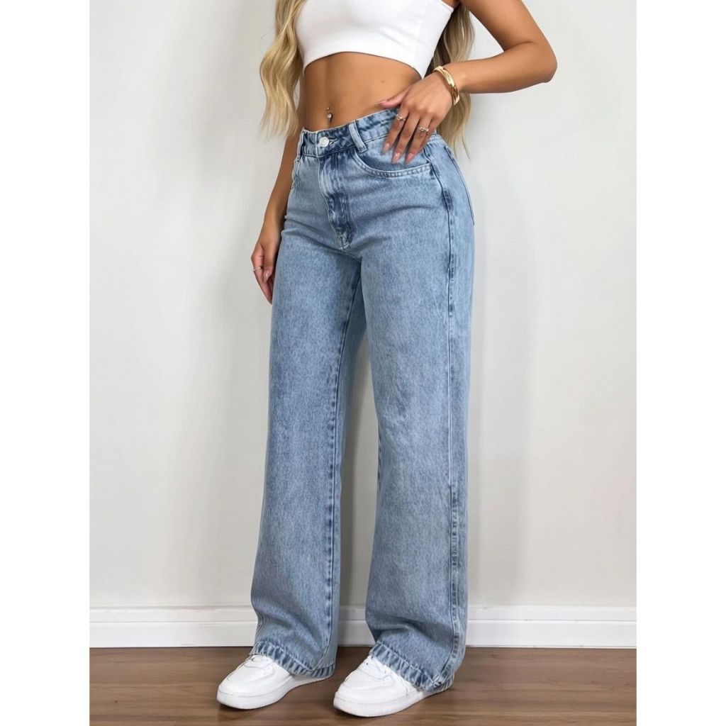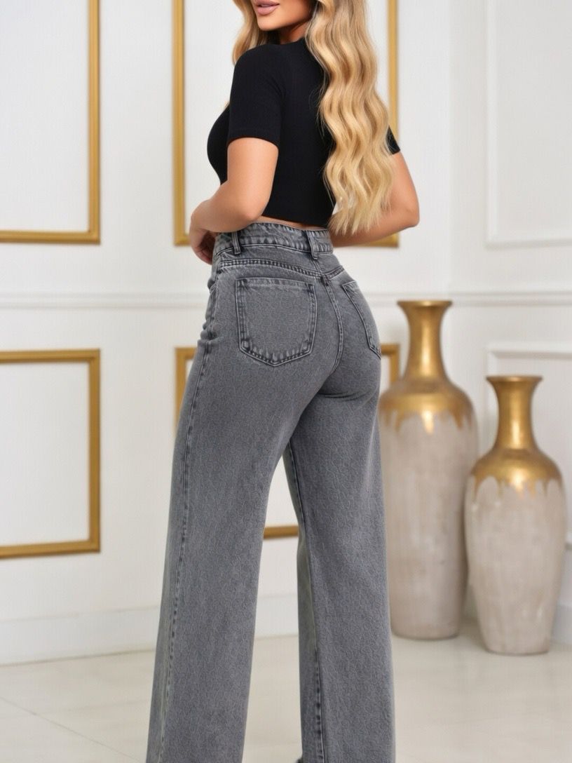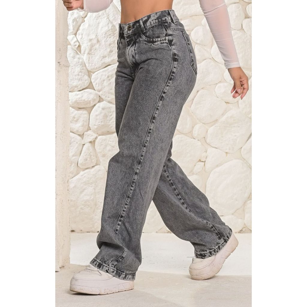 Calça Wid Leg CINZA BLACK MARMORIZADA Jeans Sem lycra Cintura Alta