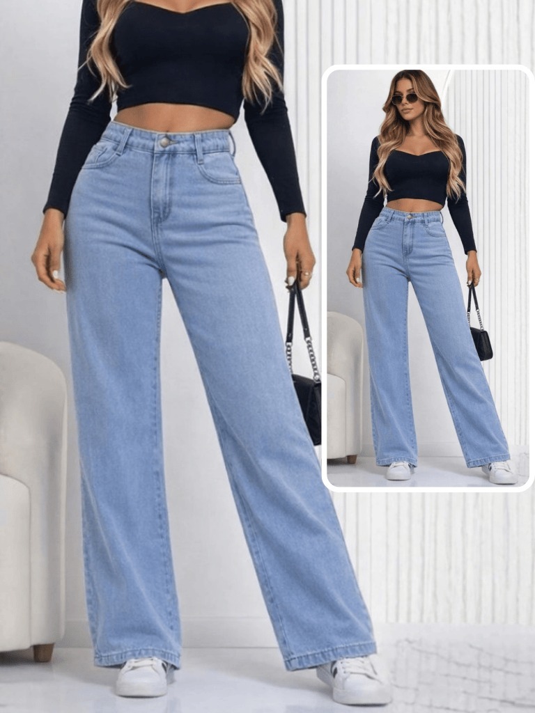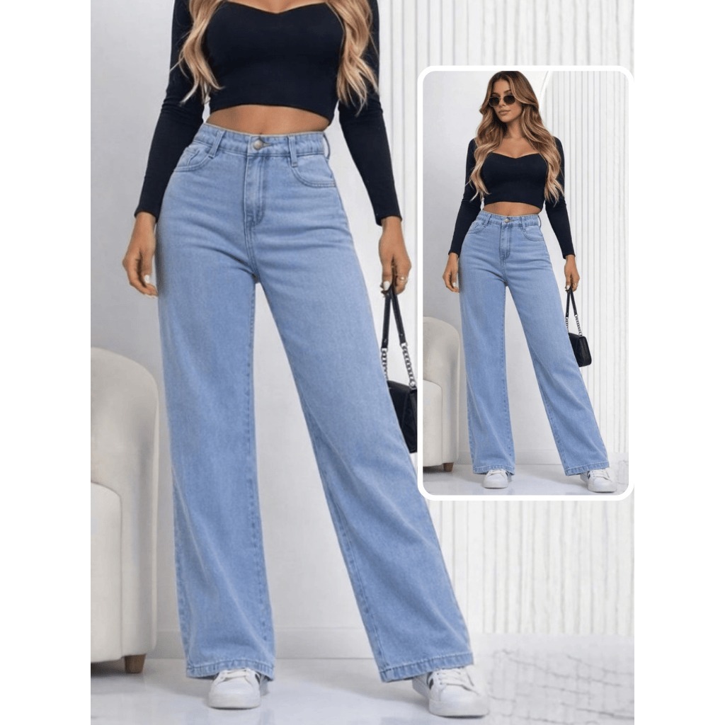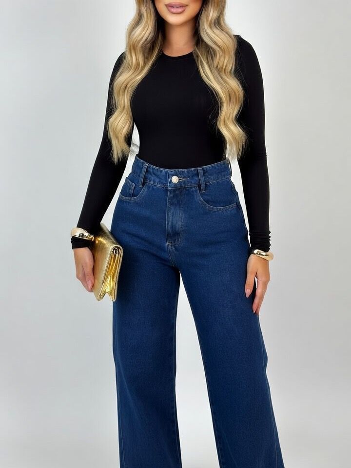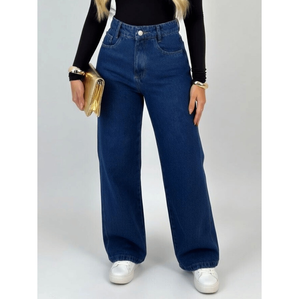 Calça Wid Leg CINZA BLACK MARMORIZADA Jeans Sem lycra Cintura Alta
