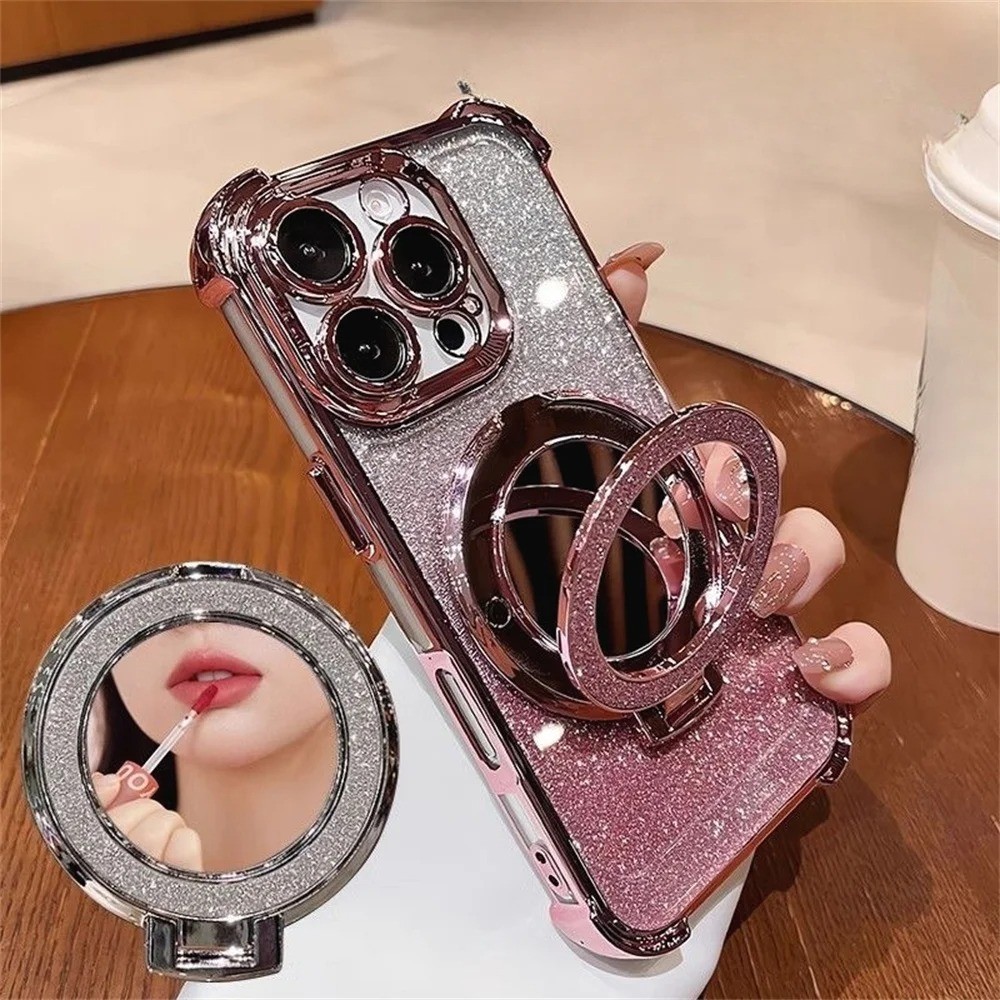 Kit Vermelho Espelho Suporte Capinha Capa Para IPhone 13 12 11 16 15 14 Pro Max Plus Amortecedor Macio À Prova De Choque