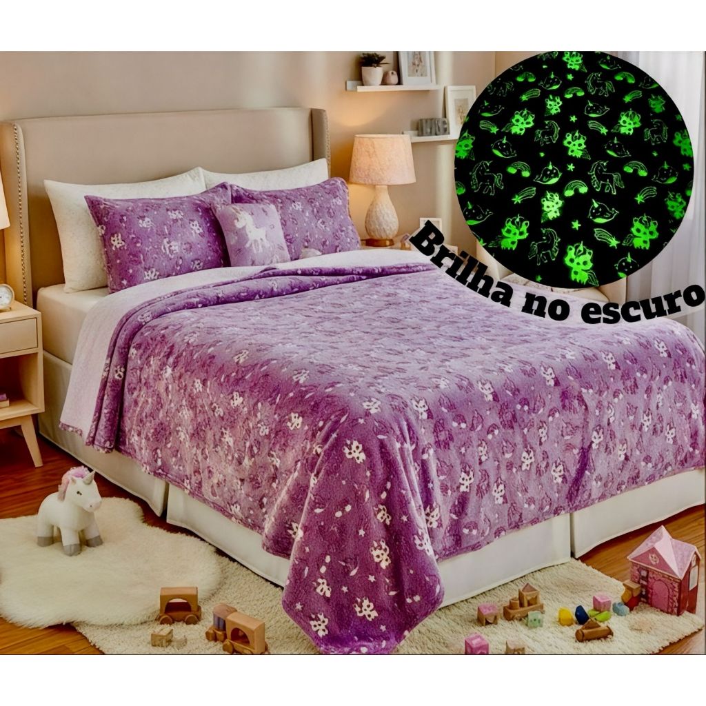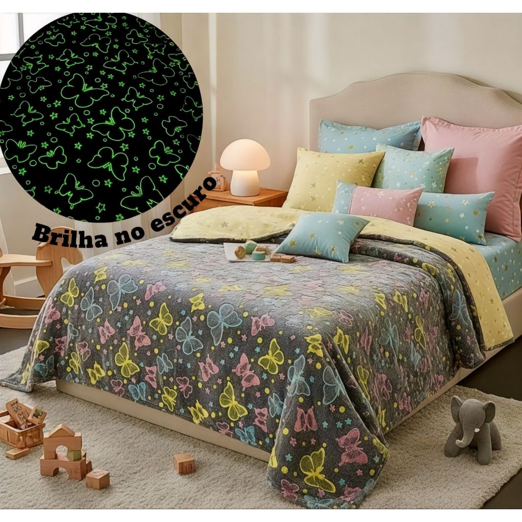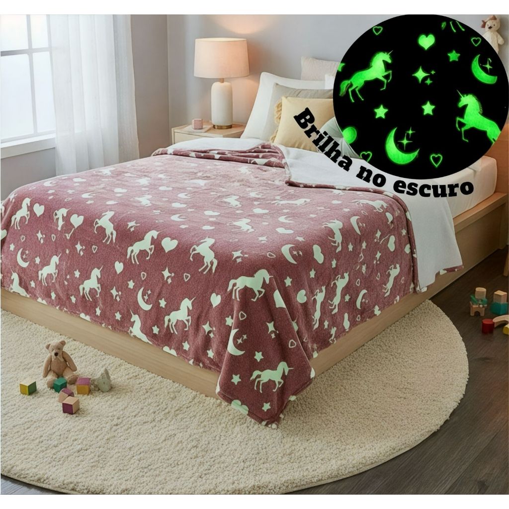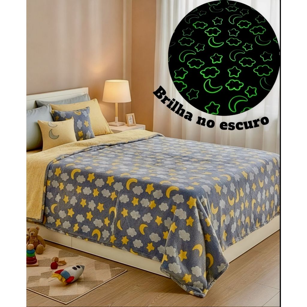Cobertor Manta Infantil Casal 2,00x1,80Mt Brilha no Escuro Antialérgico