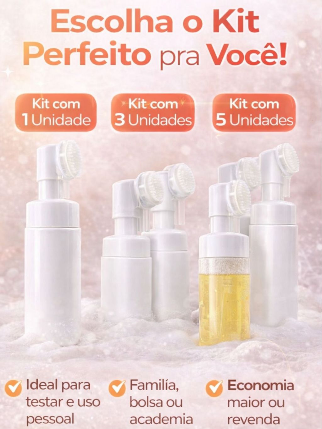 kit Frasco Pump Espumador com Escova Silicone 1,2 ou 5 und 200ml/100ml Skin Care Limpeza Massageador Facial