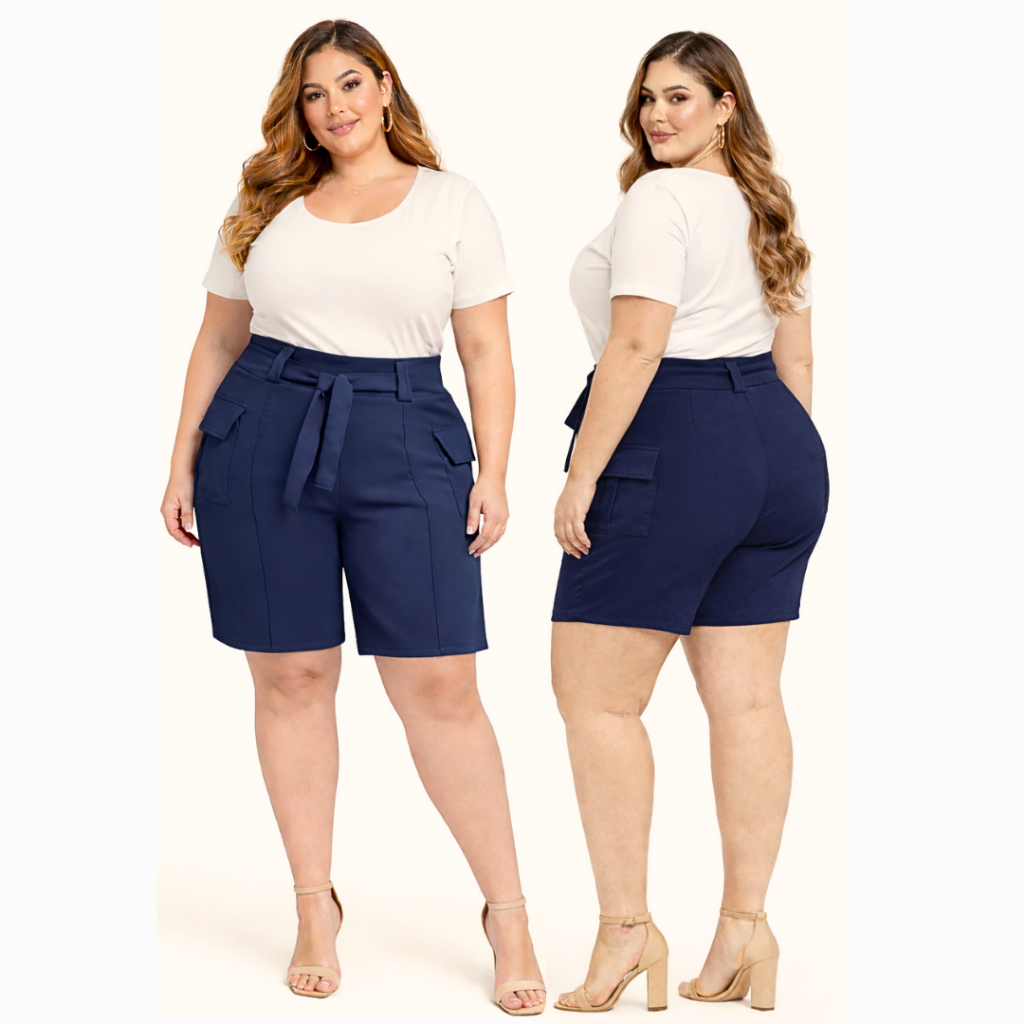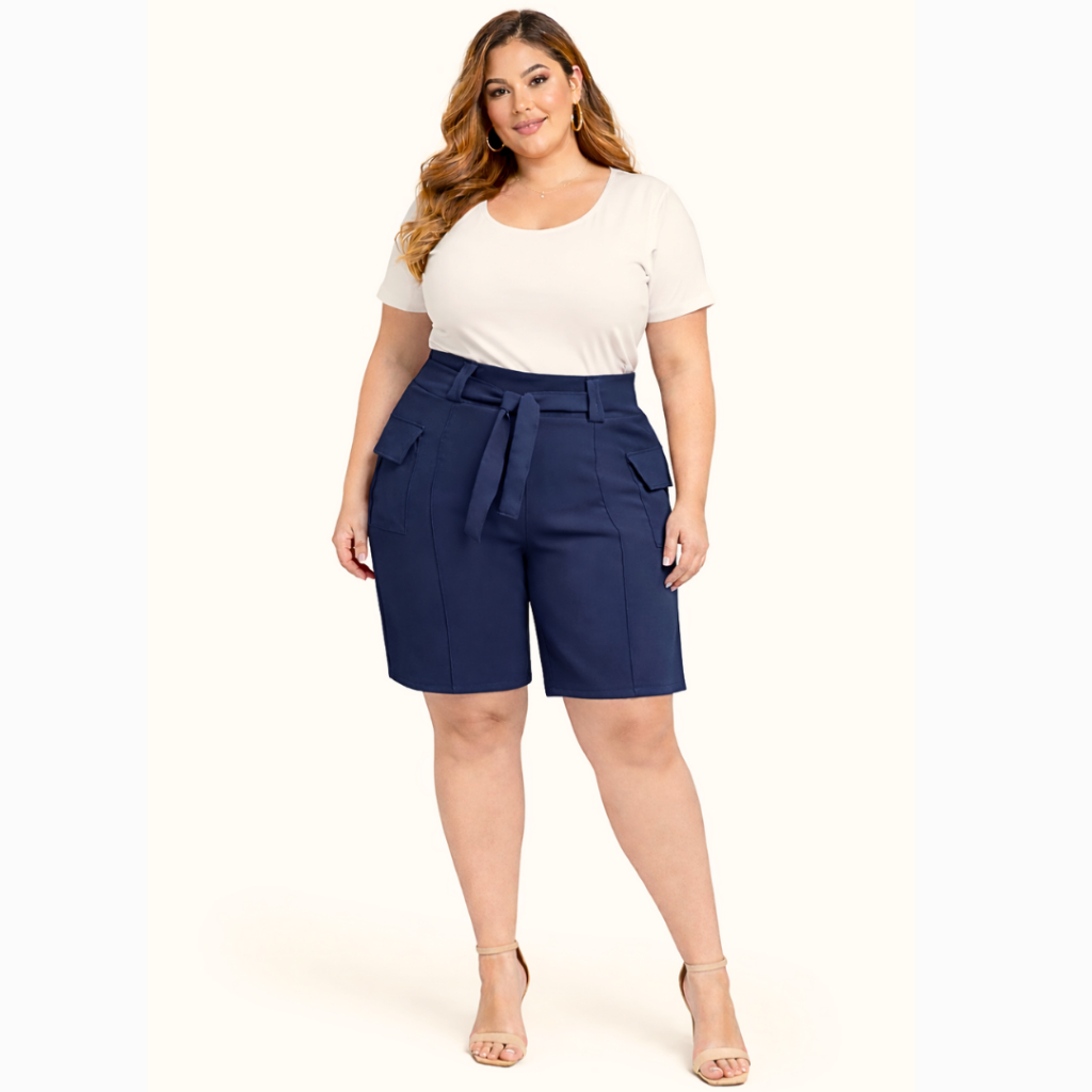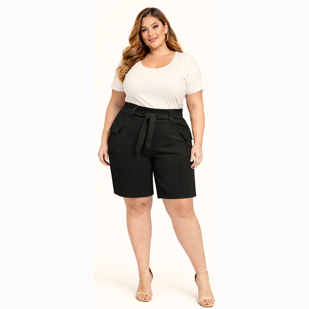 Short Alfaiataria Feminino Plus Size Premium Elegante Social com Laço na Frente - SP 01