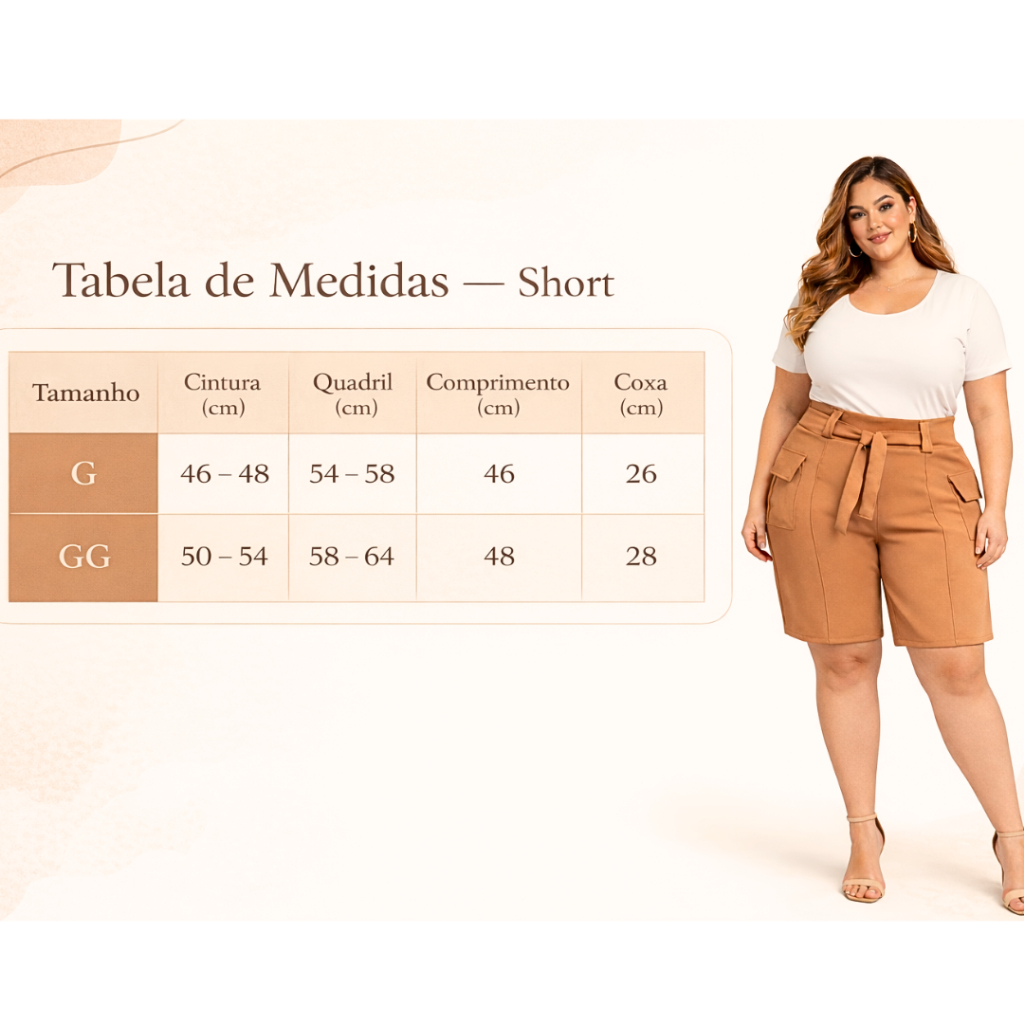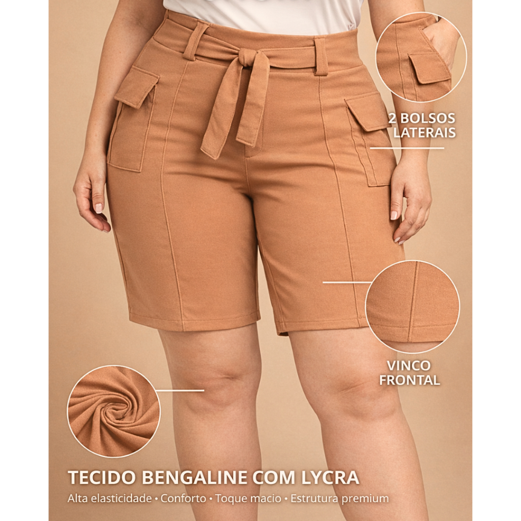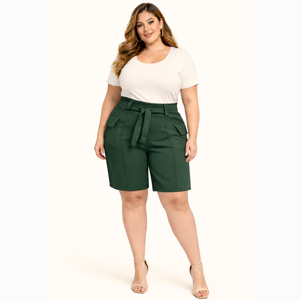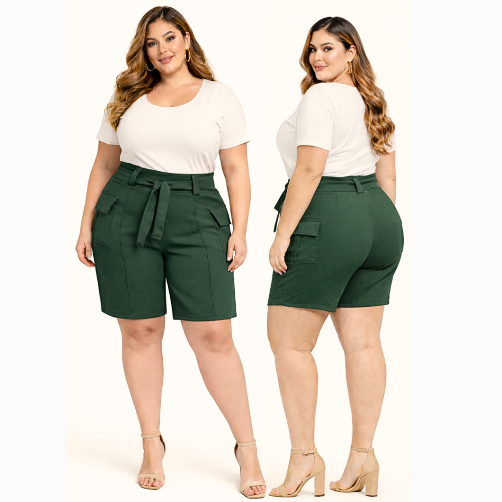 Short Alfaiataria Feminino Plus Size Premium Elegante Social com Laço na Frente - SP 01