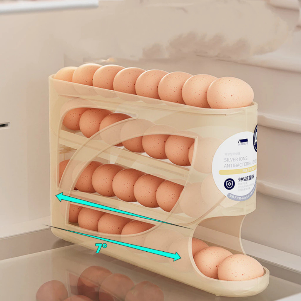 Porta Ovos 4 Andares Rolante em Plástico para Geladeira Organizador 20 a 30 Ovos