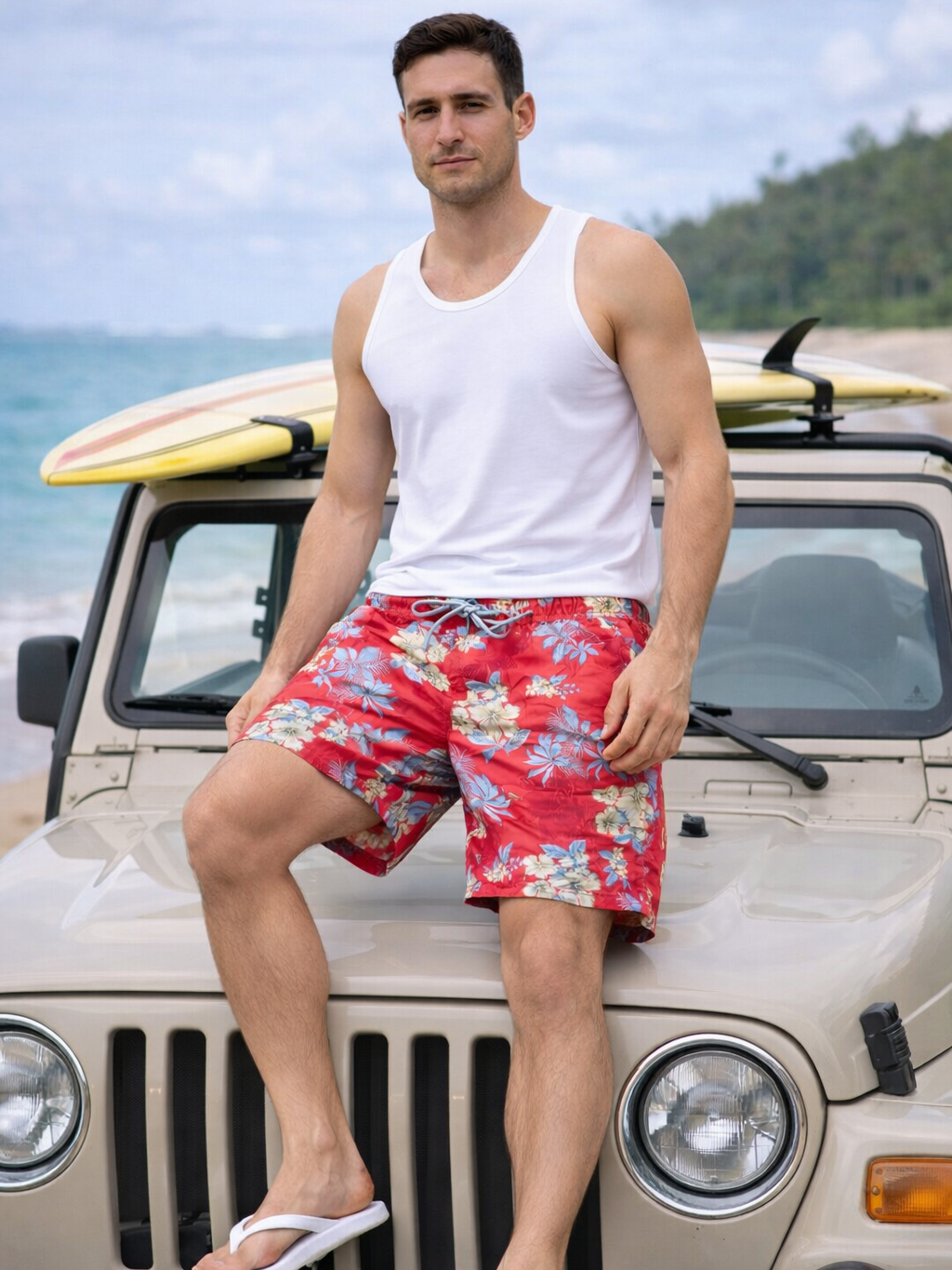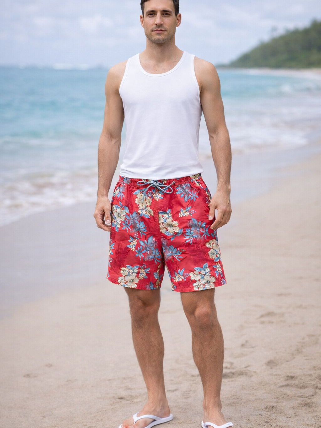 Shorts Masculino Floral Com Elástico Casual Leve Confortável Bermuda Básica Verão Praia Carnaval Sol