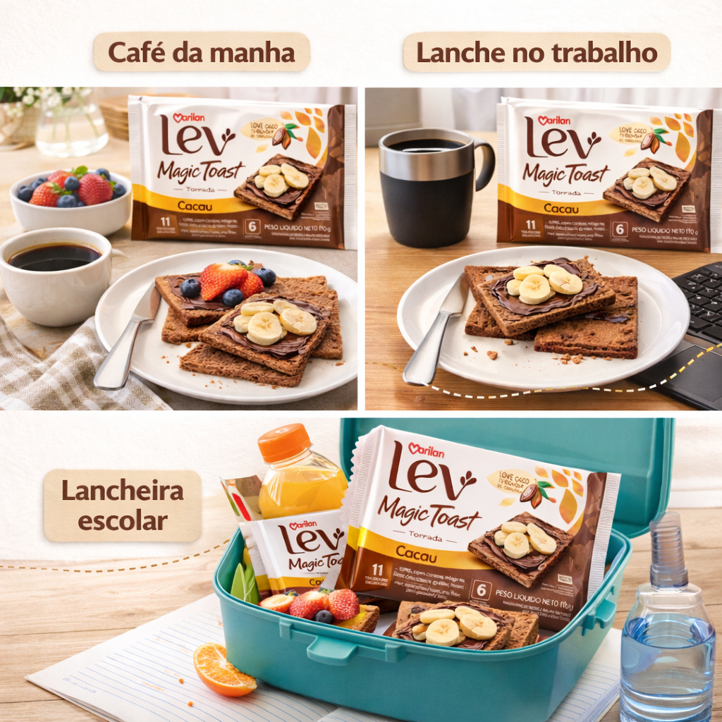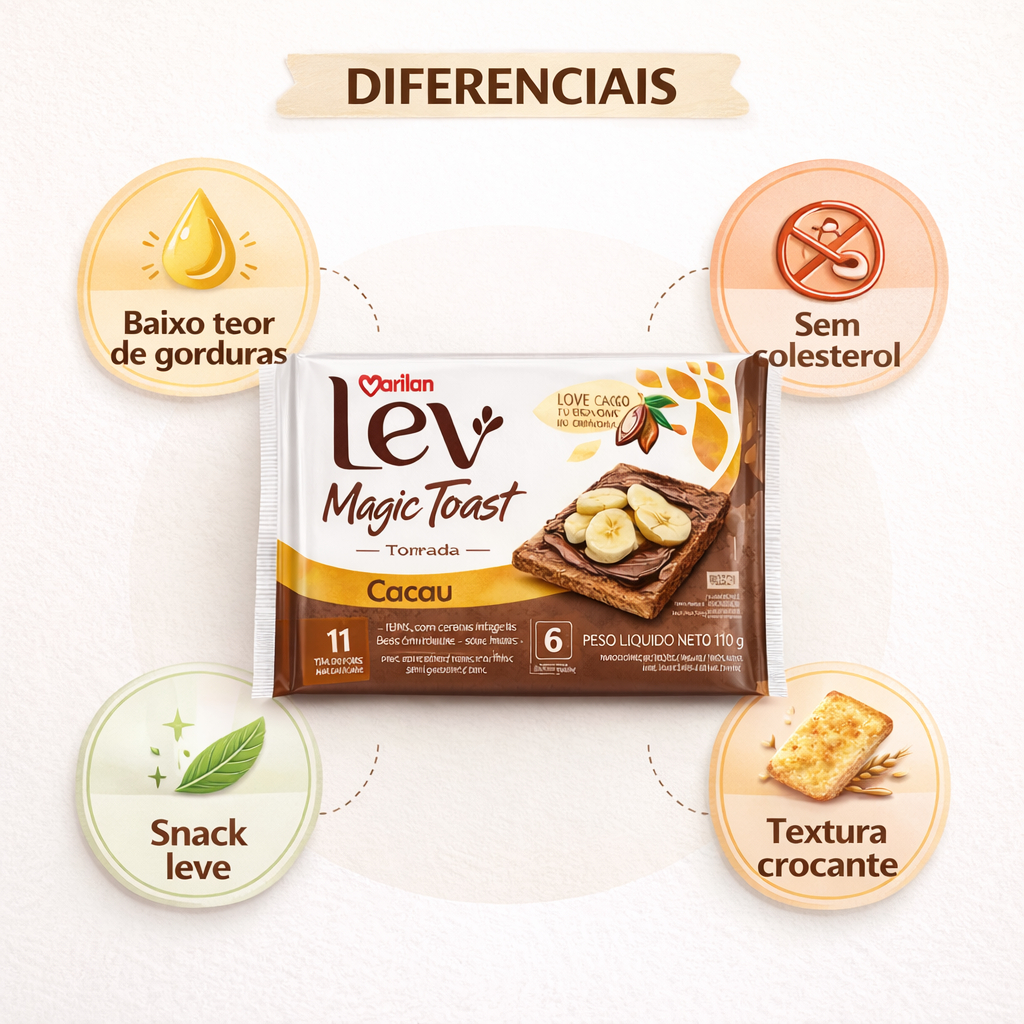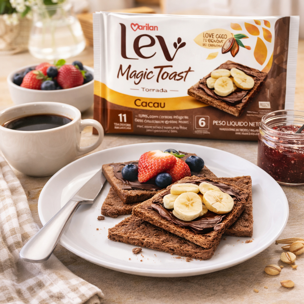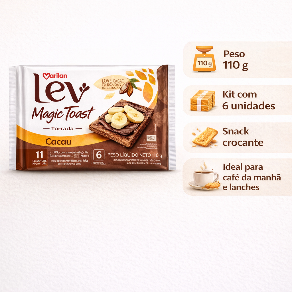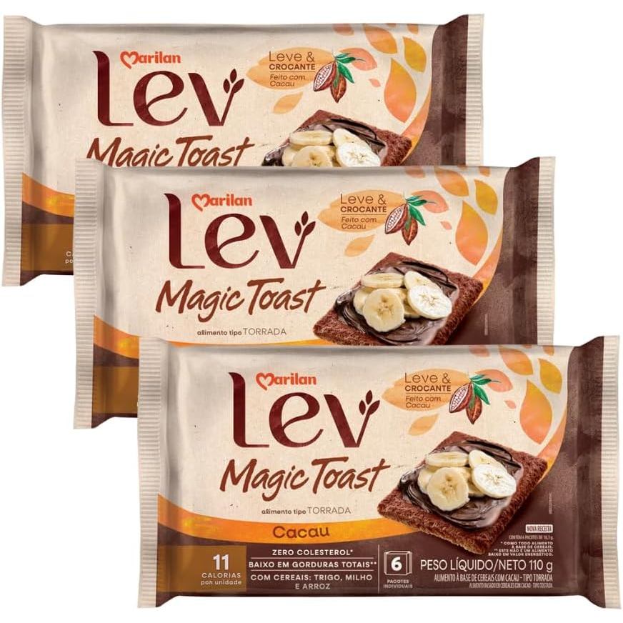 Kit 3 Marilan Lev Magic Toast Cacau 110g Torrada Leve Crocante Zero Colesterol 11 Calorias
