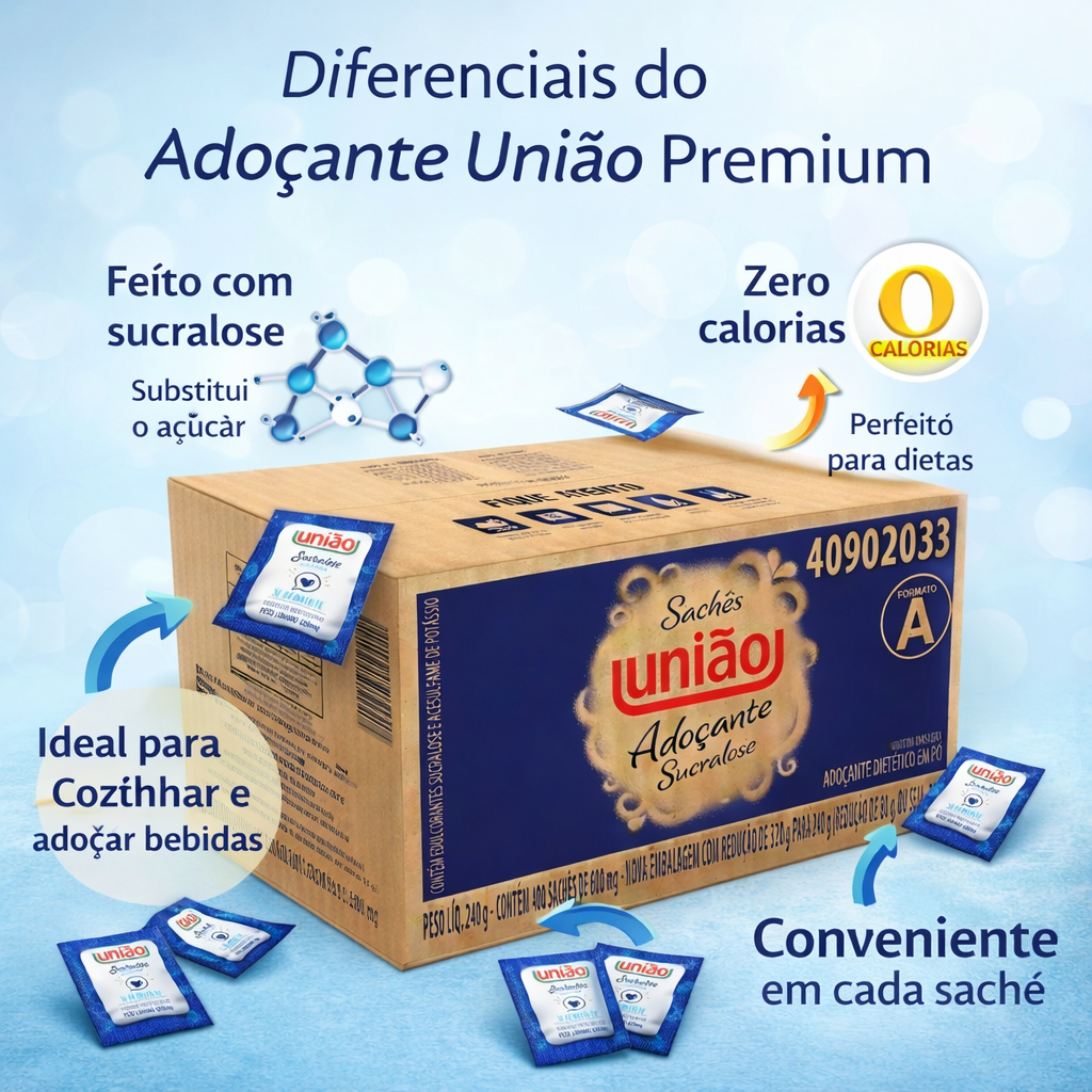Adoçante Sachê União Premium Sucralose Diet 100 Unidades 200 Unidades e 400 unidades