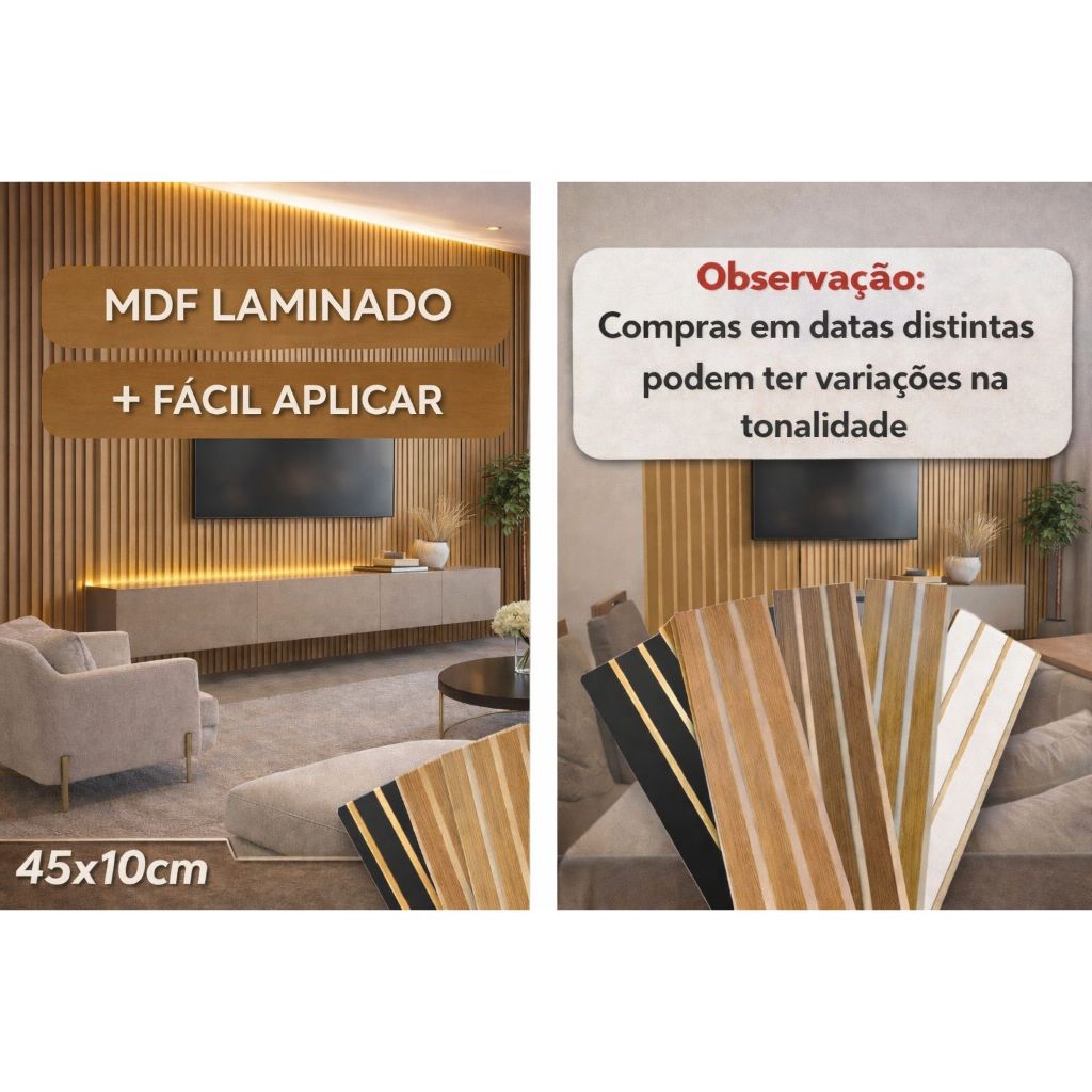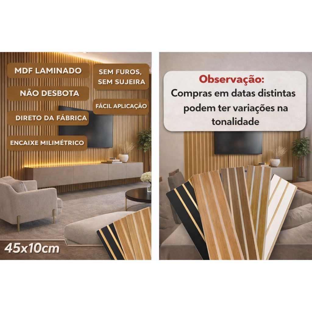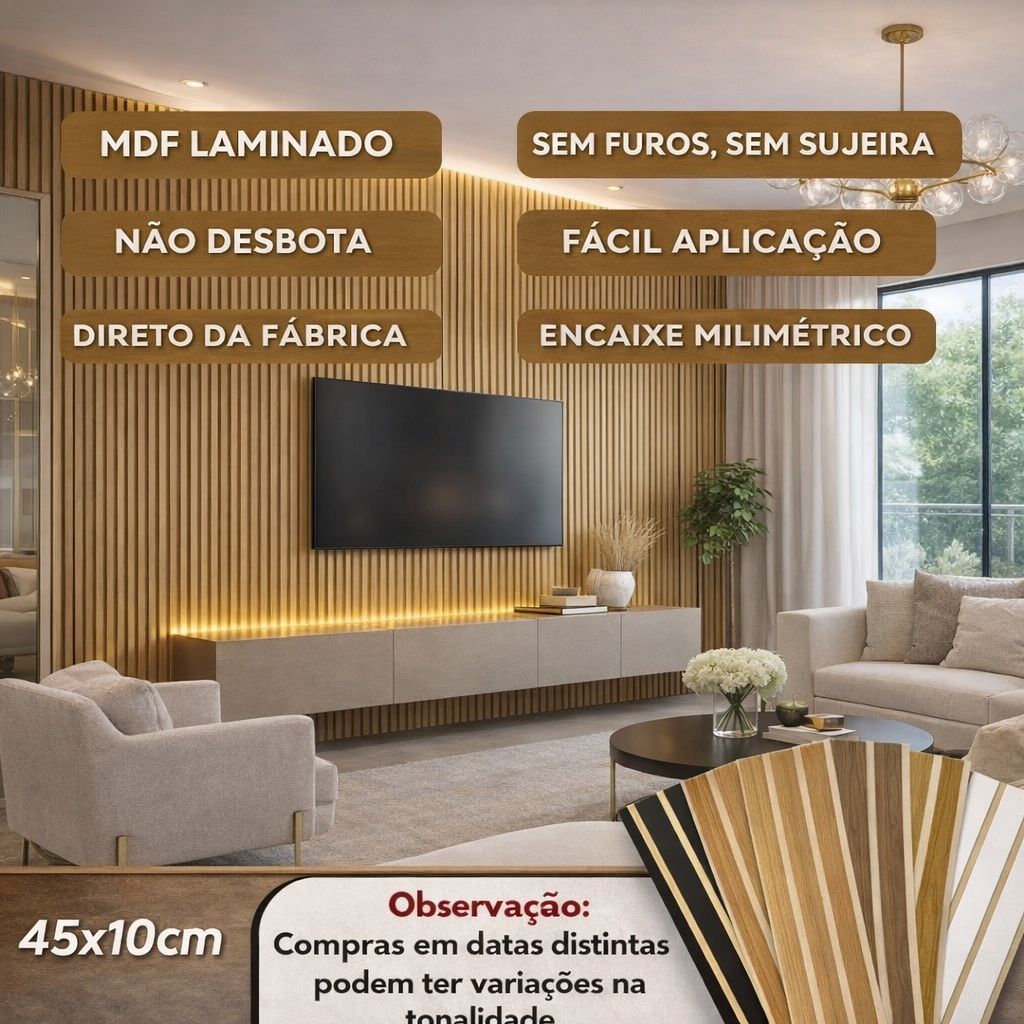 Kit 5 À 50 Placas Ripada Premium Autocolante Madeira MDF 45x10 Decorativo Quarto Sala Tv Escritório