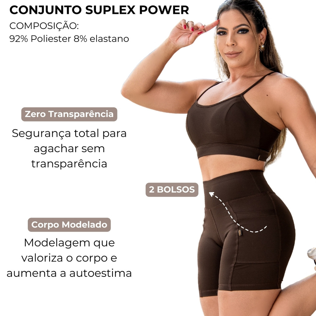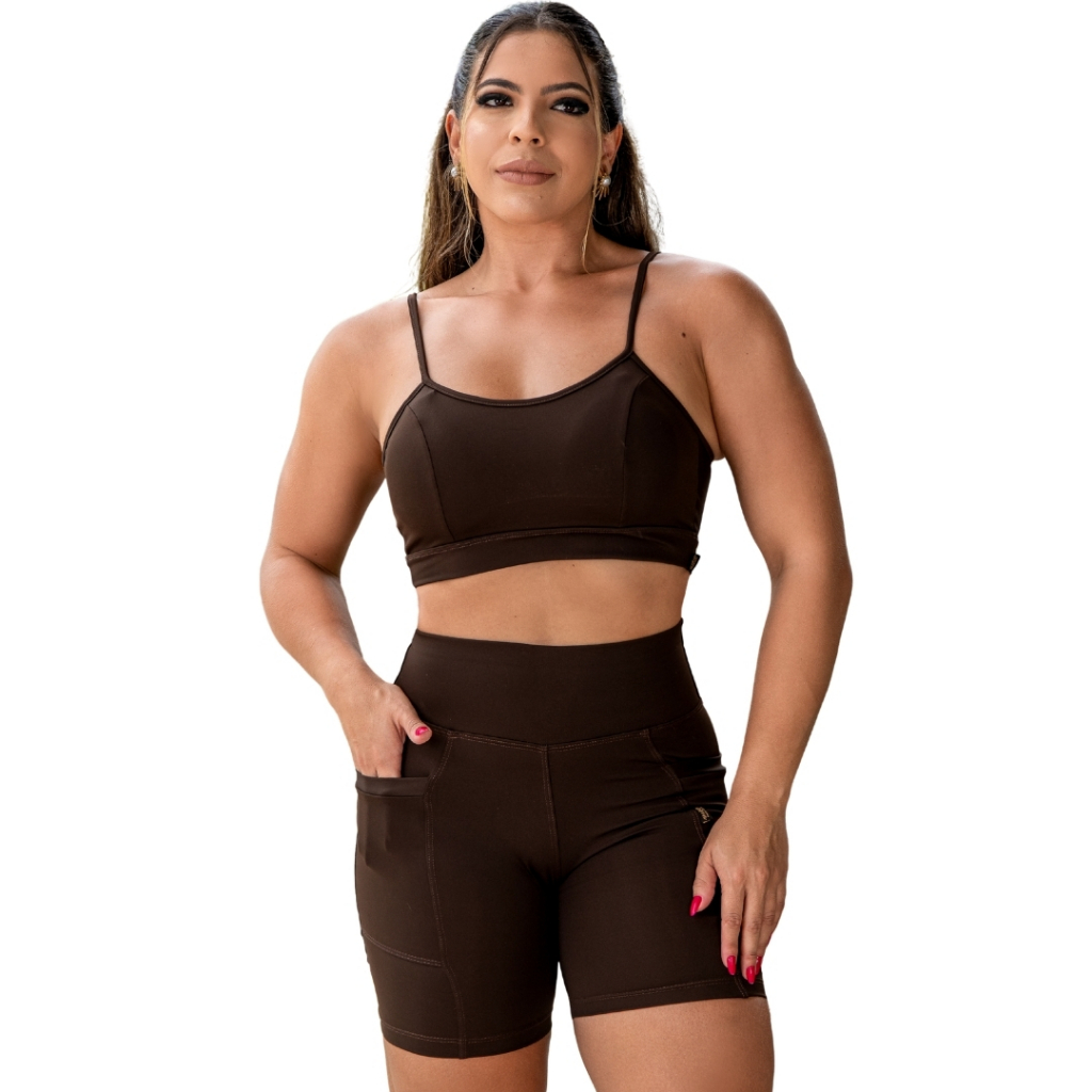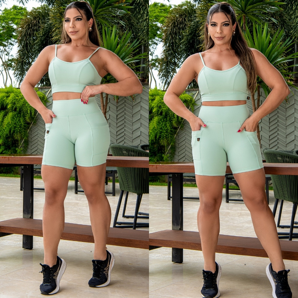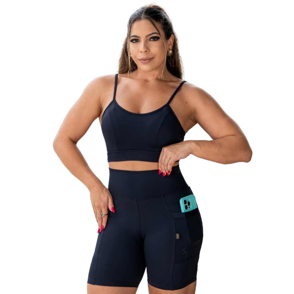 Conjunto Academia Feminino Alta Compressão Short com Bolso + Top Sustentação