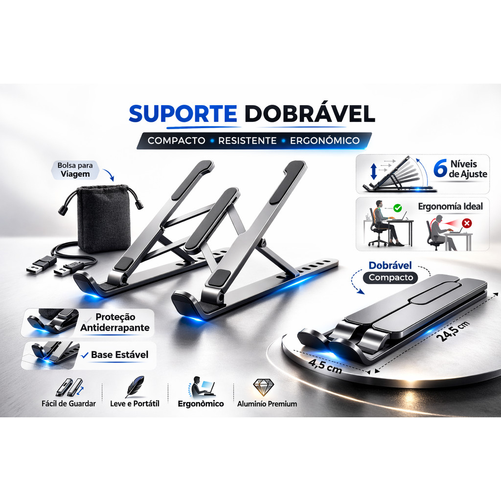 Suporte para Notebook Ajustável Dobrável Antiderrapante Premium