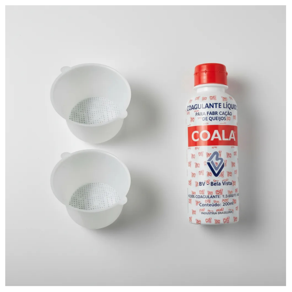 Kit Fazer Queijo Minas Frescal – 2 Formas de 500g + Coagulante Coala 200ml