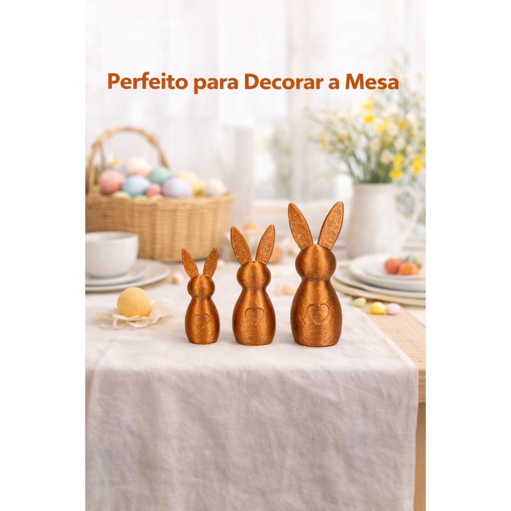 3 Enfeites de Páscoa Coelhos Decoração Moderno Minimalista