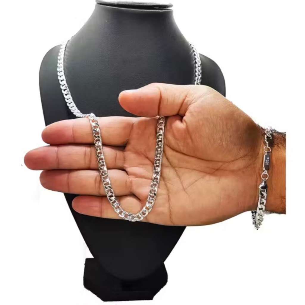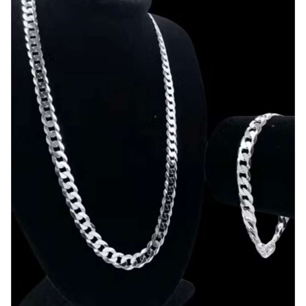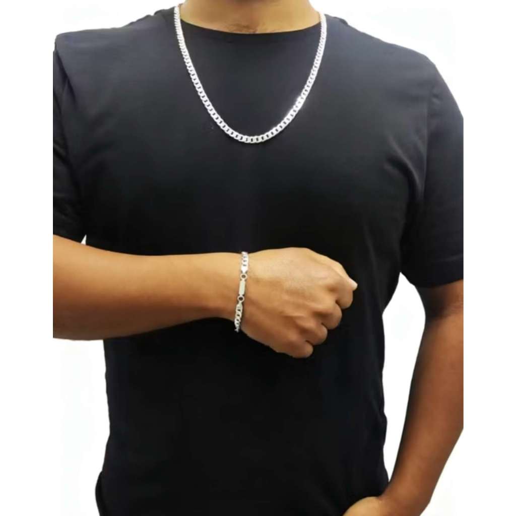 [KIT TIPO Conjunto requintado de colar e pulseira masculina] banhado a prata 925, com mais de 60 cm