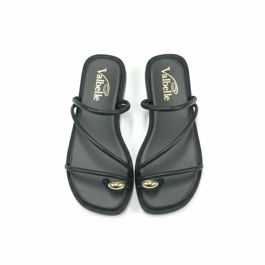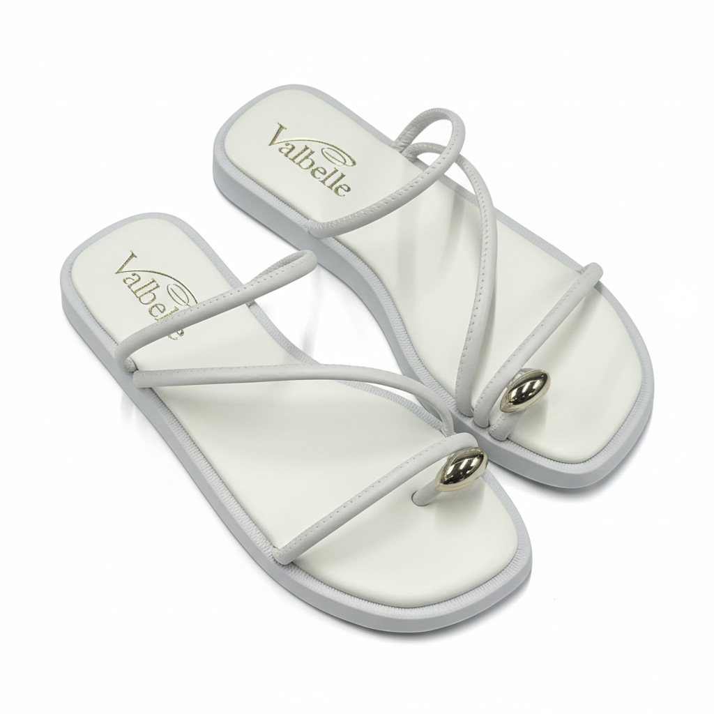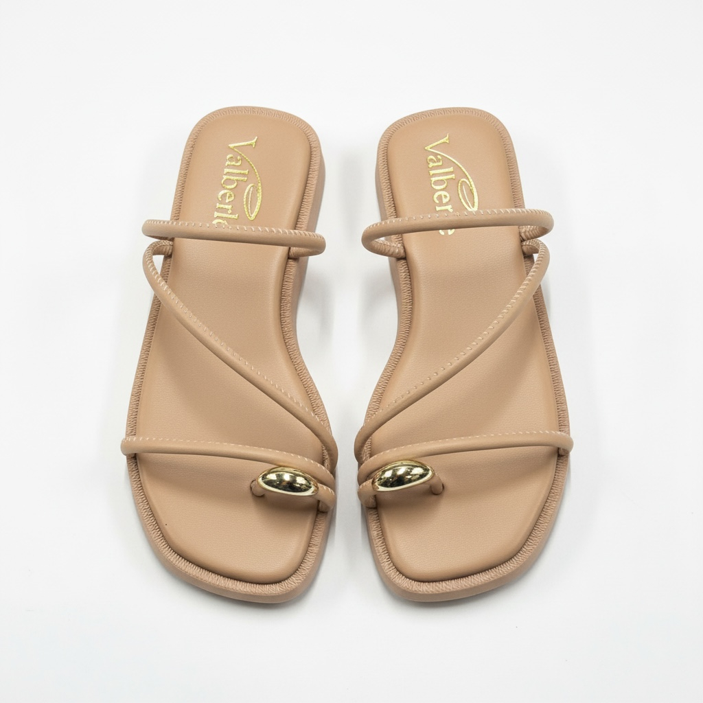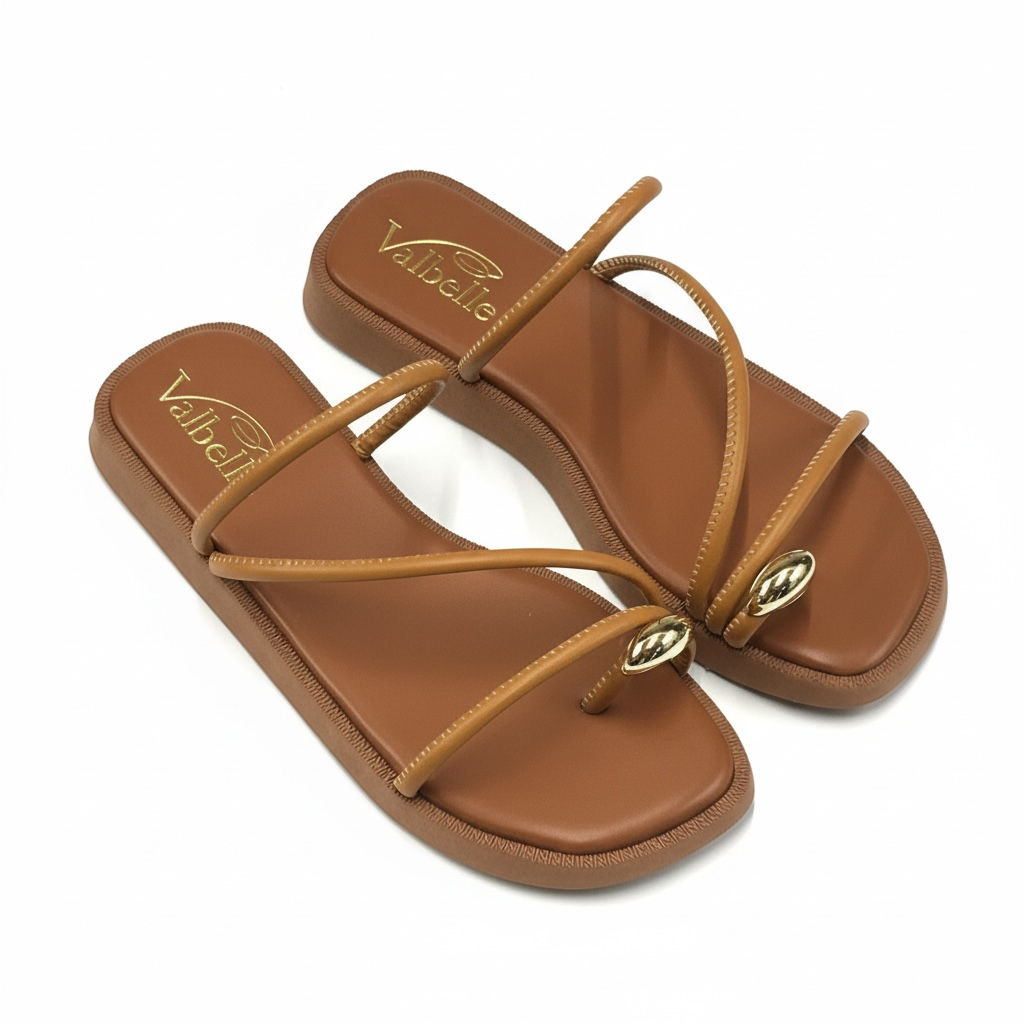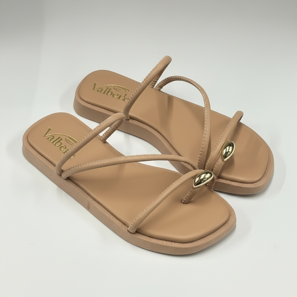 Sandalia Papete Flat com pedrinha no dedo com tiras sofisticada
