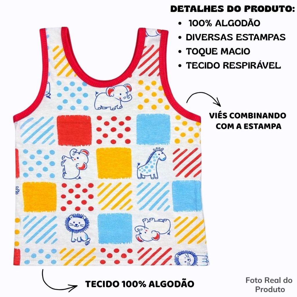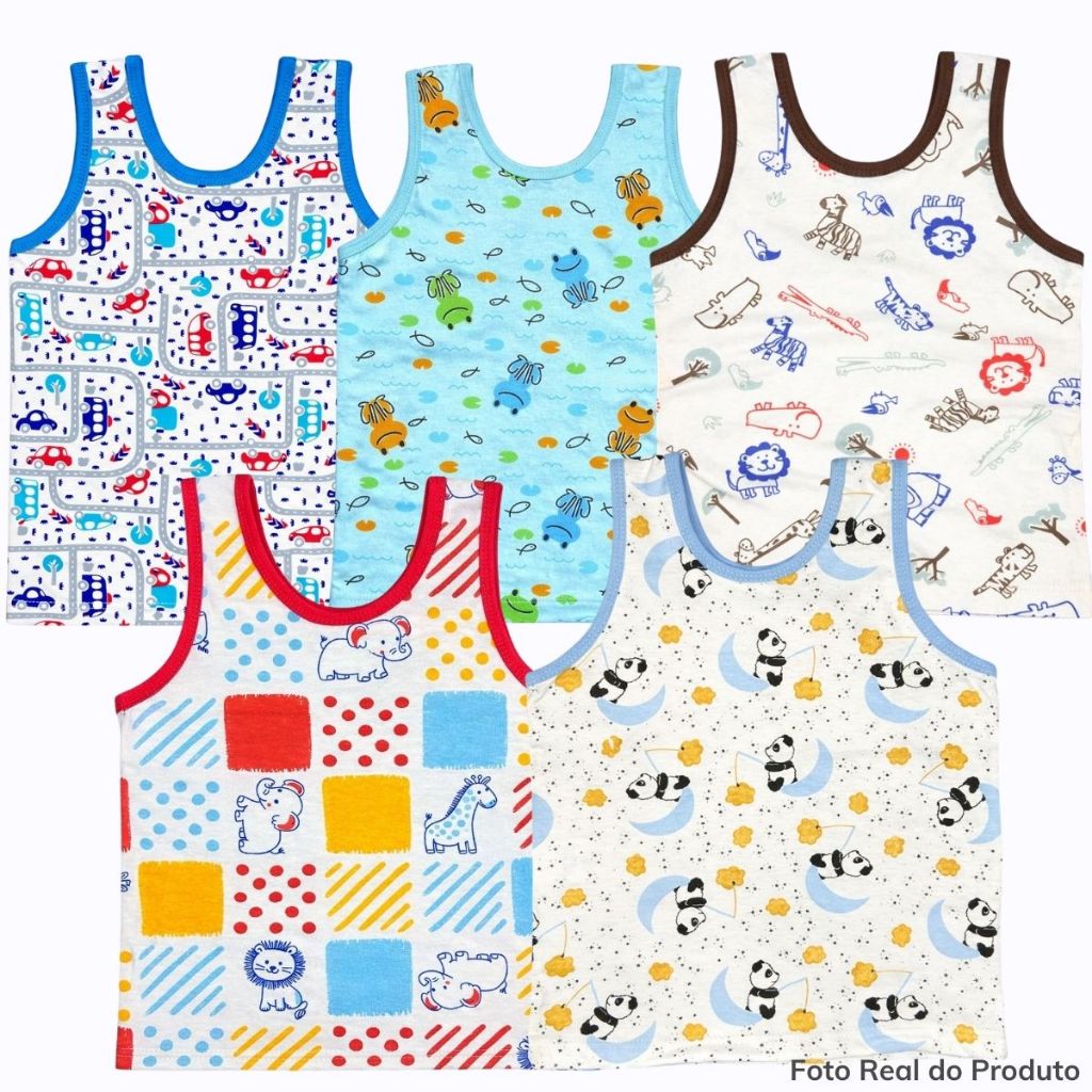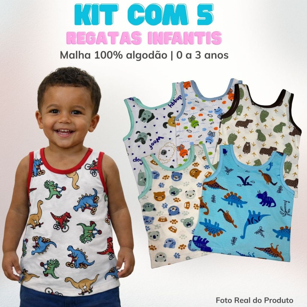 Kit 5 Camisetas Regatas Infantil e Bebê para Menino e Menina Estampadas de Algodão Para Calor De Verão Confortável