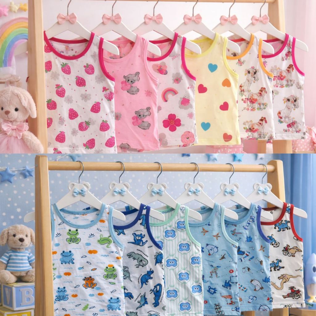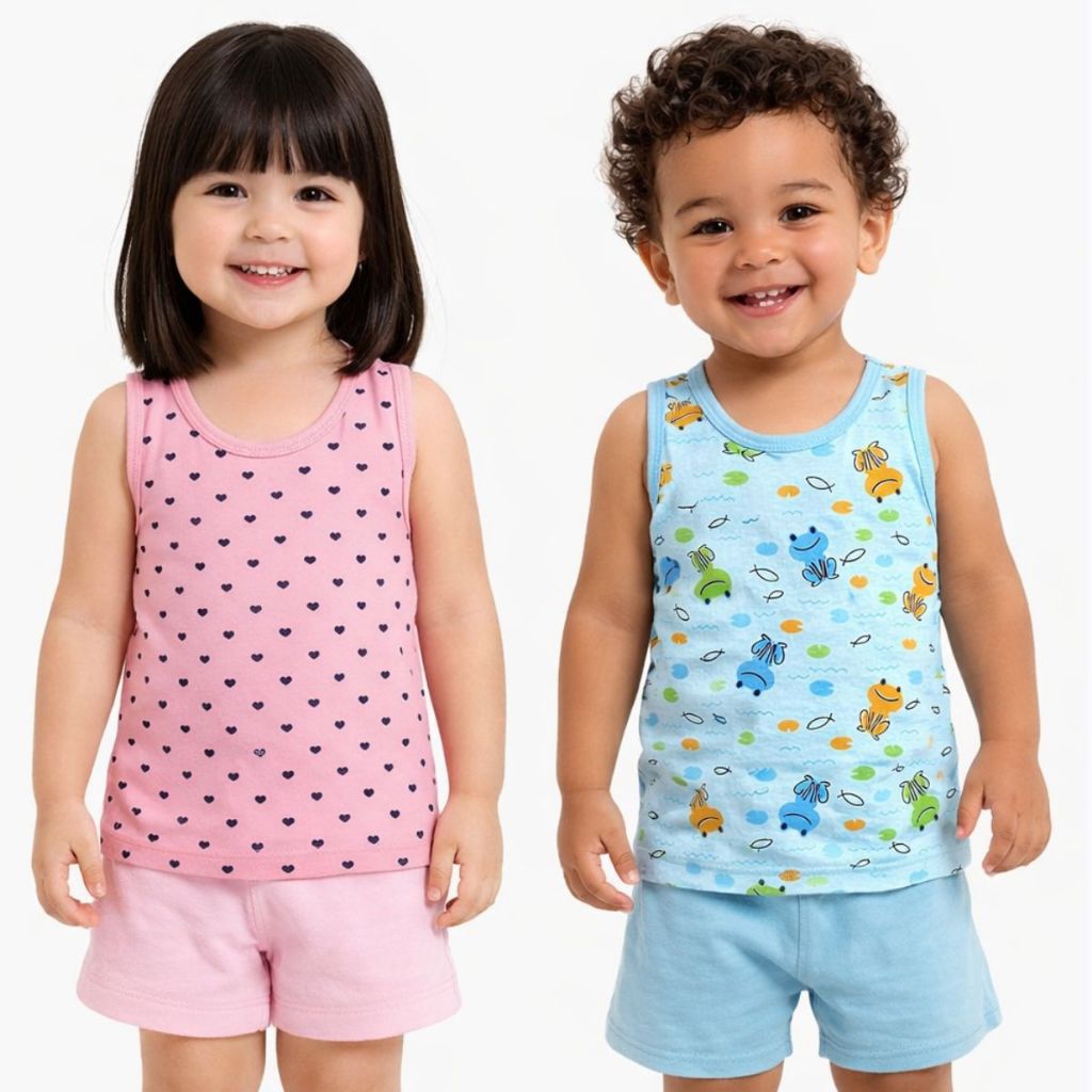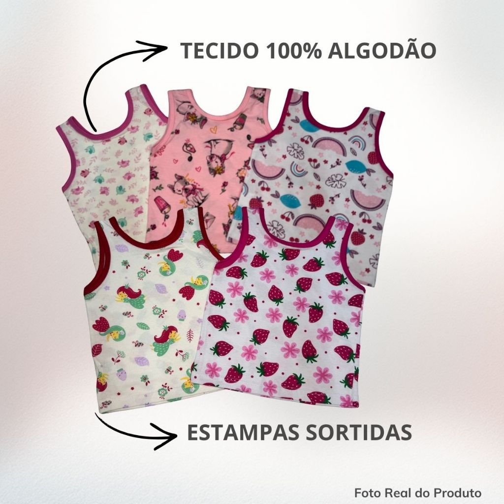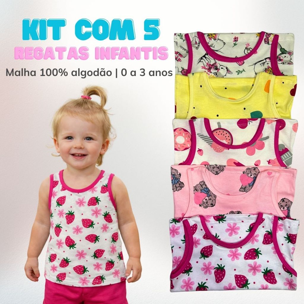 Kit 5 Camisetas Regatas Infantil e Bebê para Menino e Menina Estampadas de Algodão Para Calor De Verão Confortável