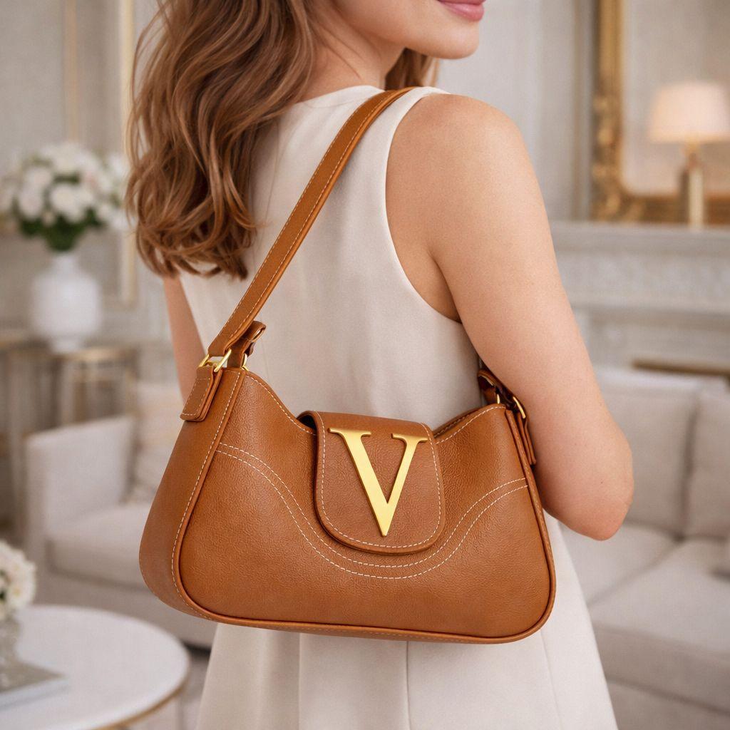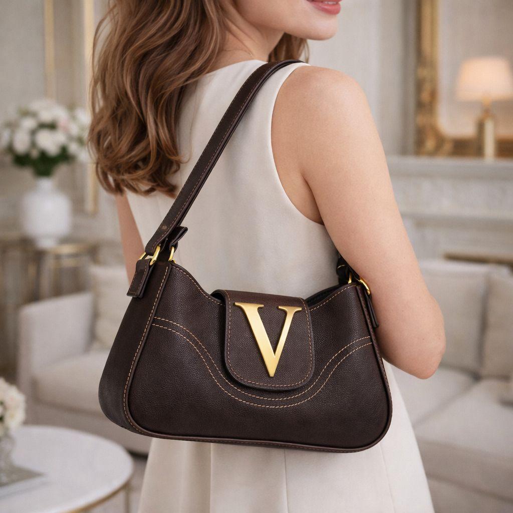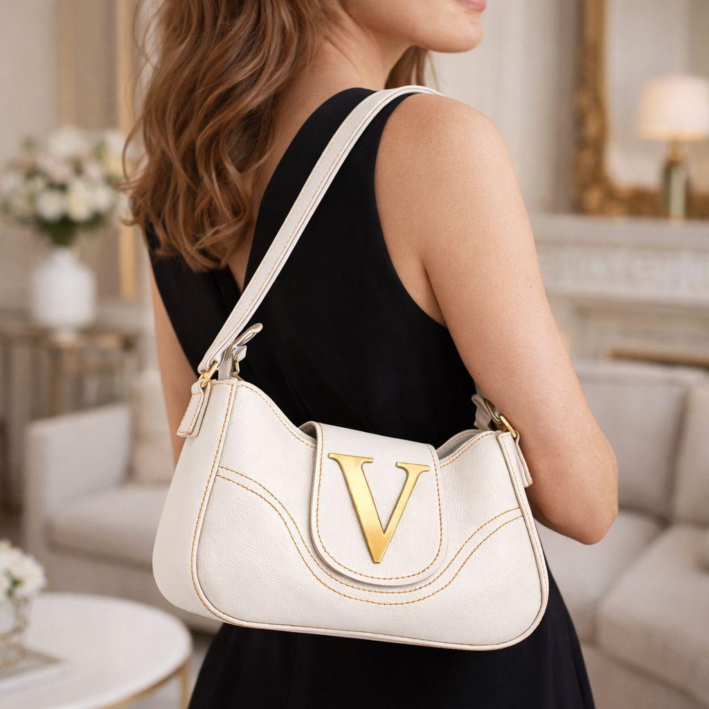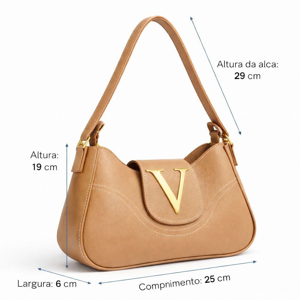 Bolsa Feminina Velure Lunna Luxo Com Metais Dourado Elegante Moderna De Ombro