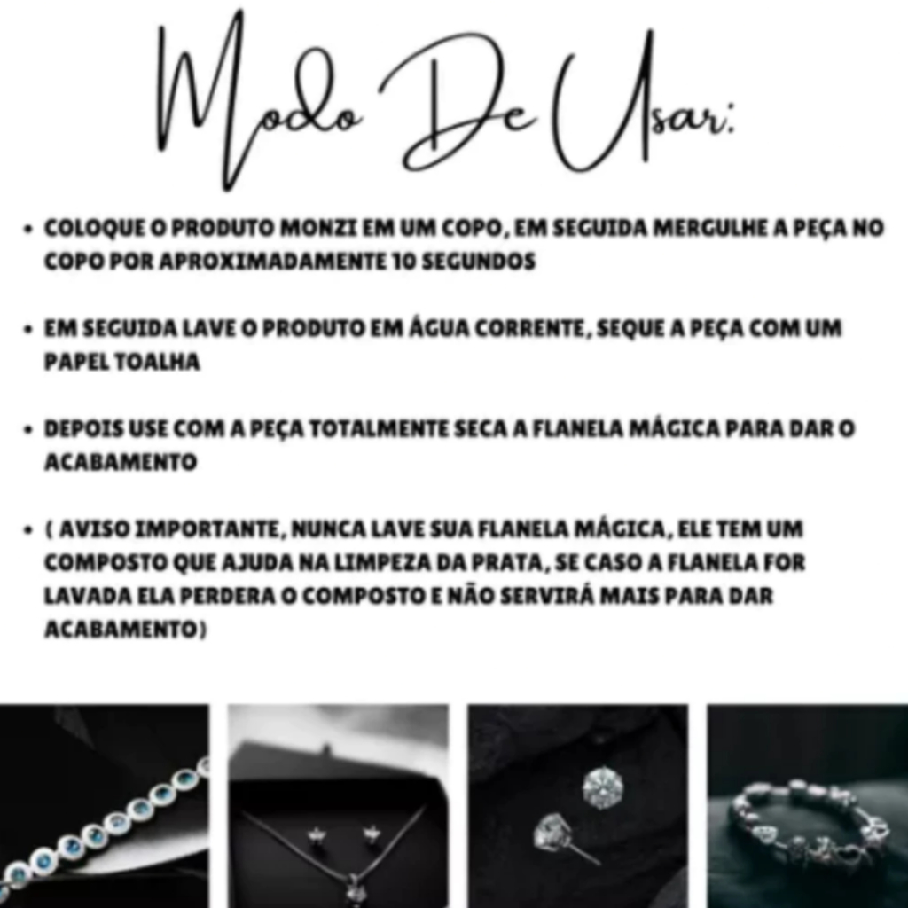 Kit 1 Monzi 35 Ml Limpa Prata 1 Flanela Magica Original 925