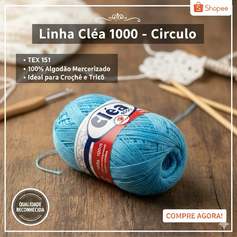 Linha Cléa 1000 Círculo 1000mts 100% Algodão Para Crochê Fio Fino Alta Rendimento