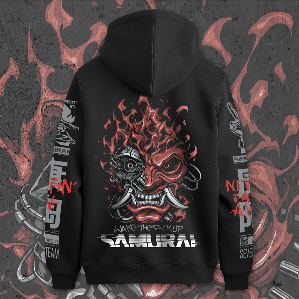 Moletom Canguru Blusa De Frio Samurai Wake The Night City Gang Cyberpunk Anime Game Unissex